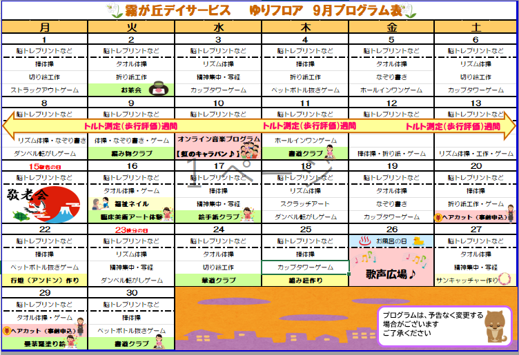 【霧が丘デイ】プログラム表☆9月号!!!