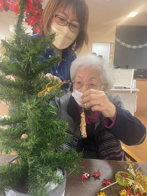 思い思いにクリスマスツリーにオーナメントを飾り付け♬