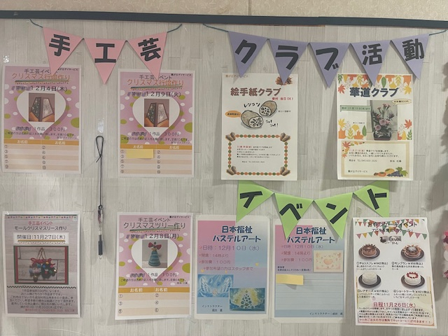 霧が丘デイサービスで開催される様々なイベントや趣味活動のお知らせを貼りだす掲示板がリニューアル!