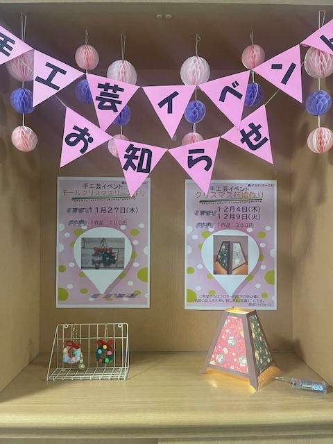 今回は、手工芸イベントで実際に出来上がる作品を見られるようにしました。