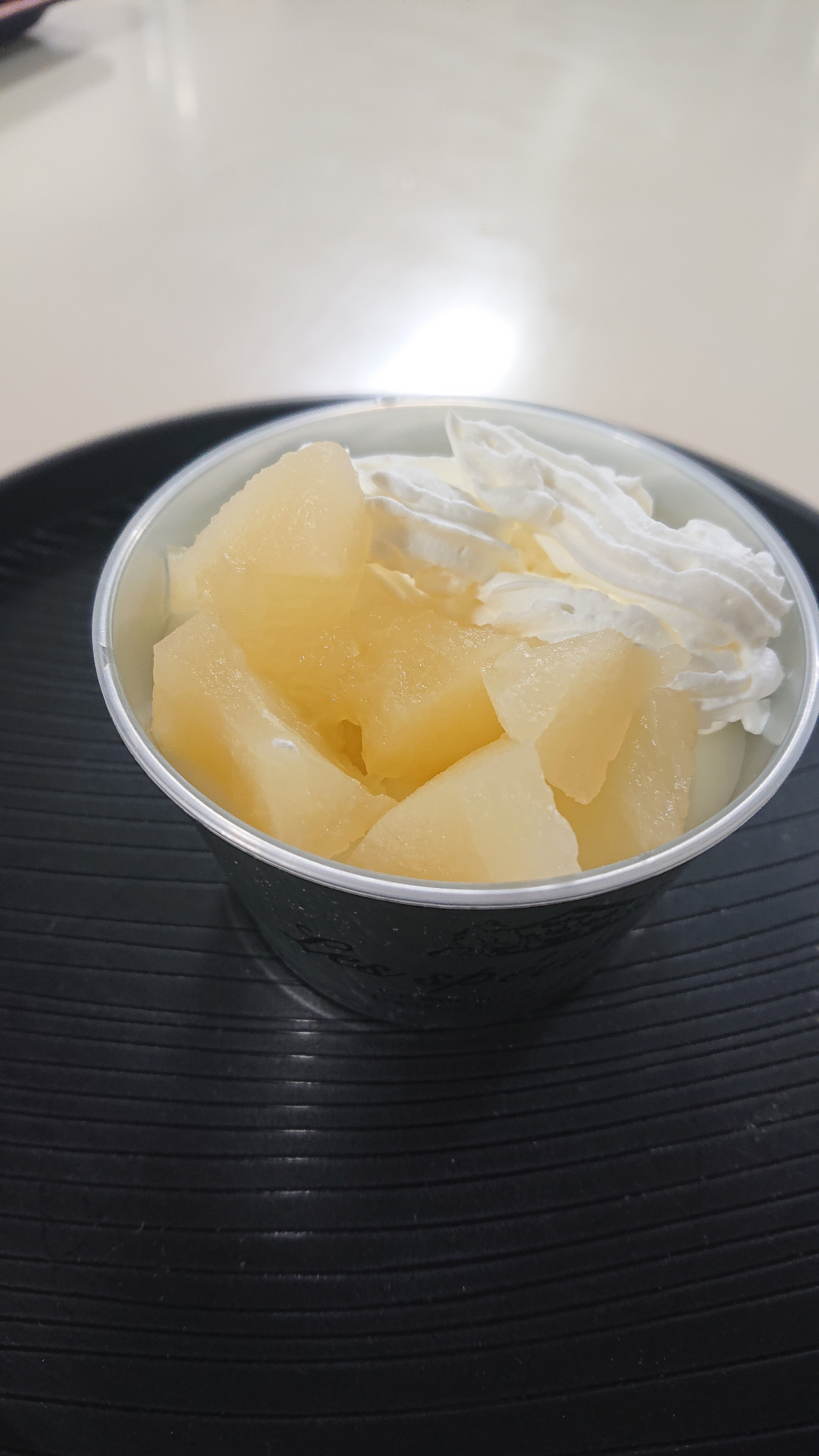 牛乳寒天の上に、ももと生クリームをトッピングしました♪