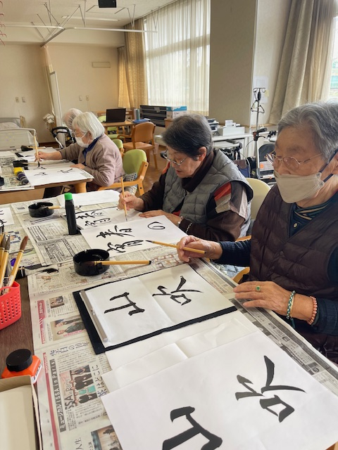 小雨が降る午後。。。静かに筆の感触を楽しむ書道クラブが開催されました。