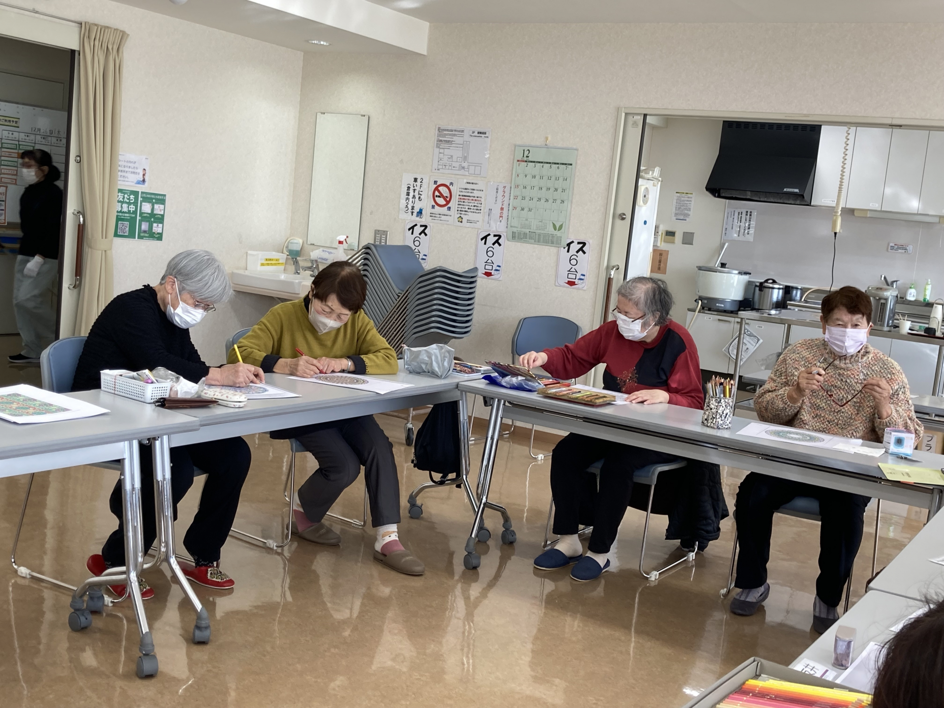 参加者の皆さんはリラックスして塗り絵の世界に浸っていらっしゃいました。