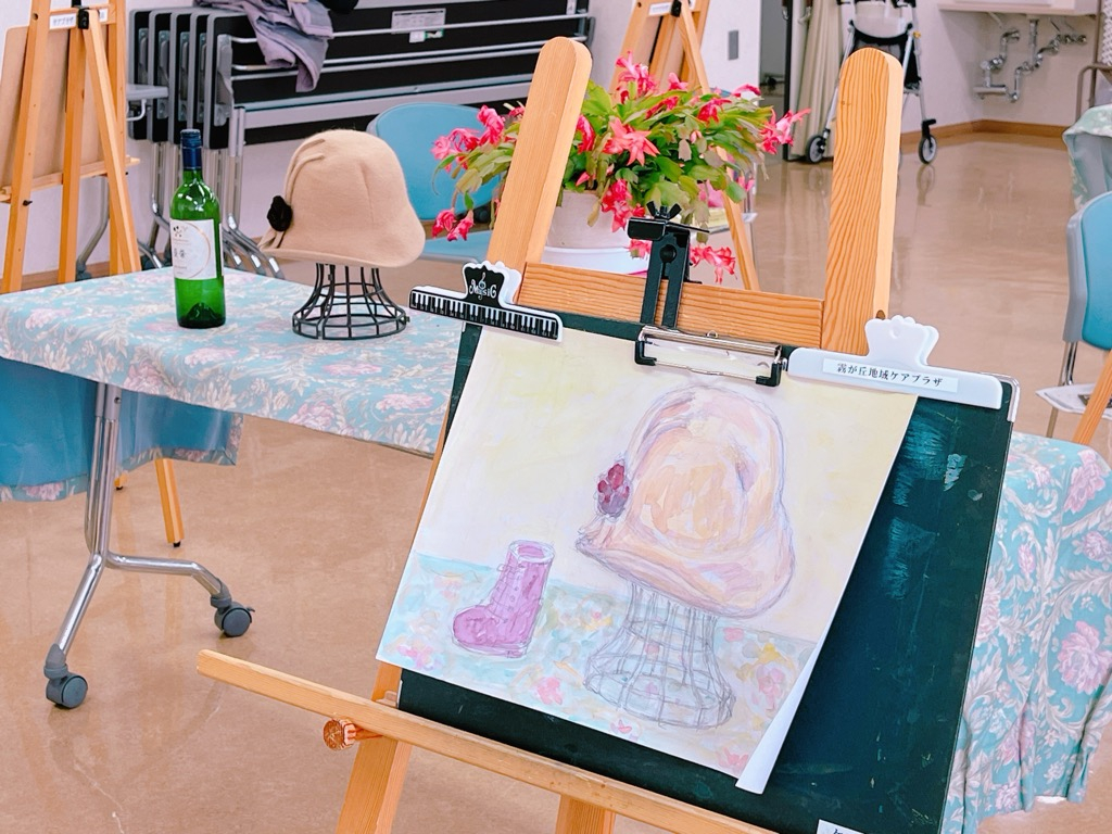 今月の題材は、参加者の方がかぶってきた帽子と紫色が鮮やかできれいなお花でした!(^^)!