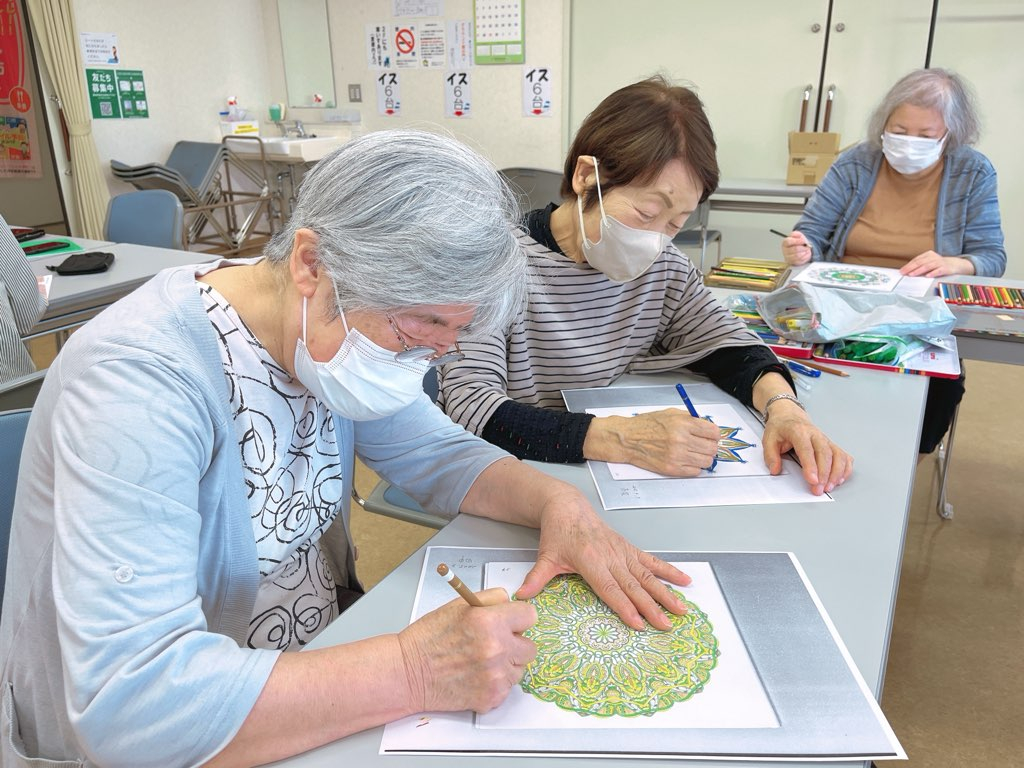 マンダラぬりえはとても細かいぬりえなので1度では終わらず、前回の続きをする方が多くいらっしゃいました。