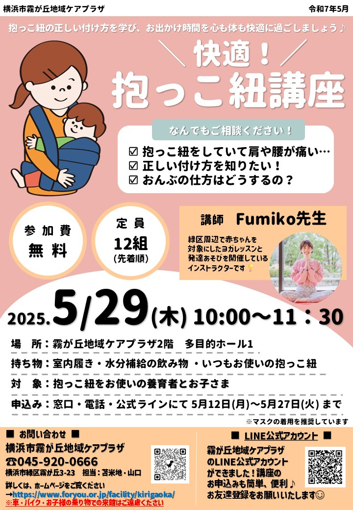 【霧が丘地域ケアプラザ】「快適!抱っこ紐講座」受付中♪