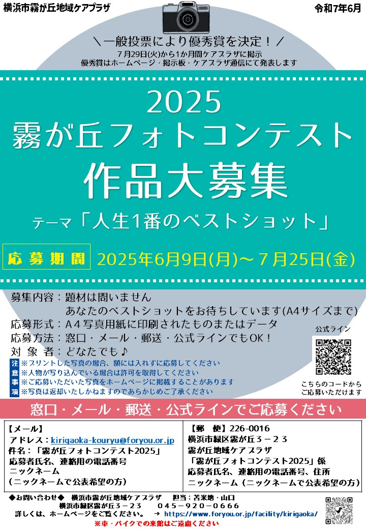 【横浜市霧が丘地域ケアプラザ】「2025霧が丘フォトコンテスト」作品大募集!