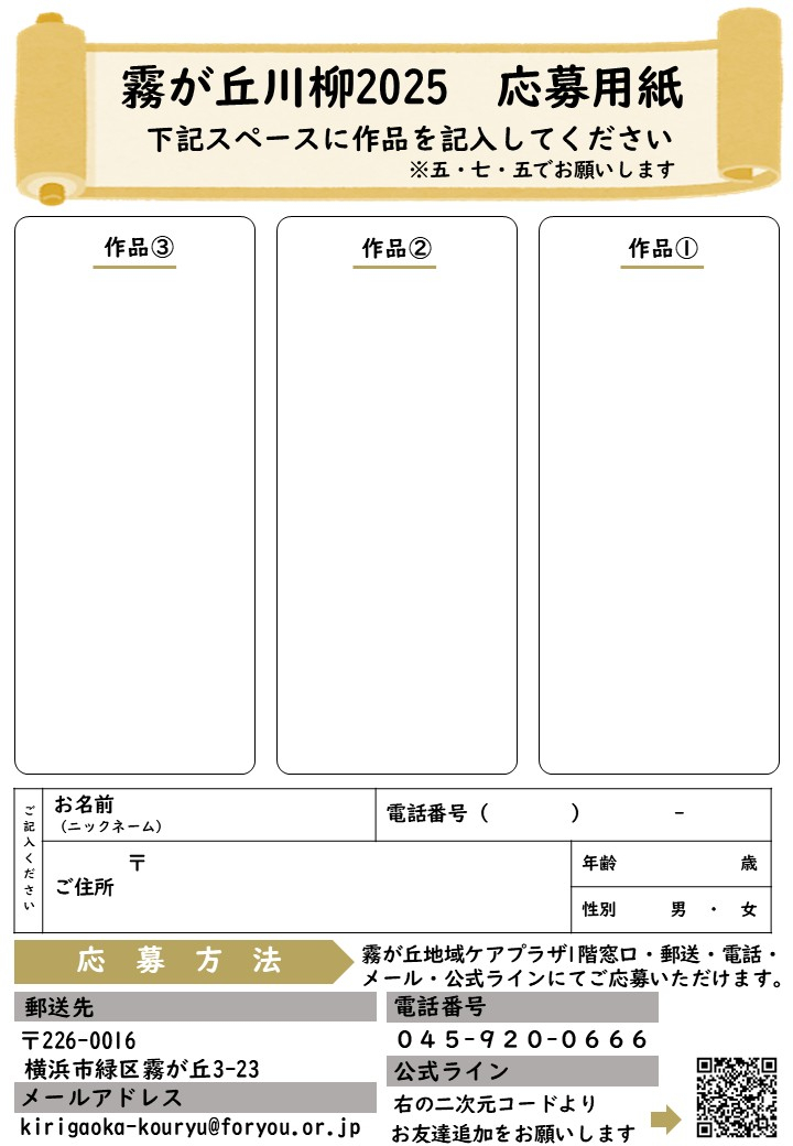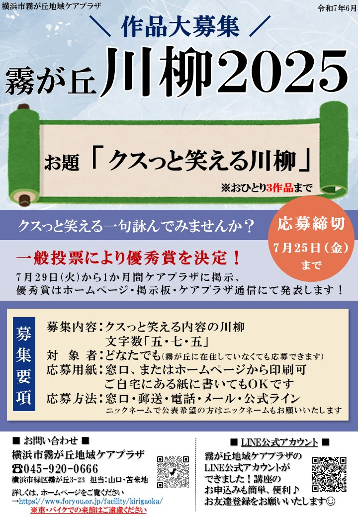 【横浜市霧が丘地域ケアプラザ】今年も開催!「霧が丘川柳2025」