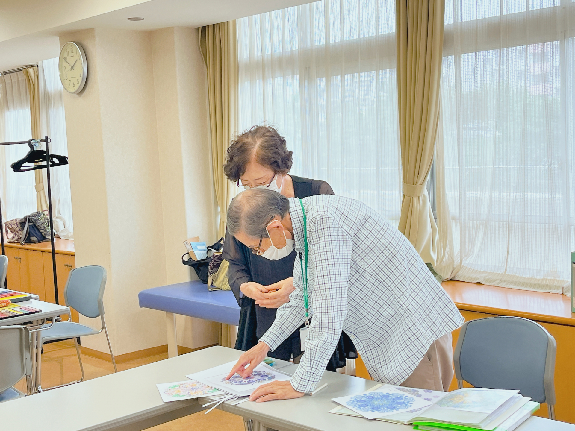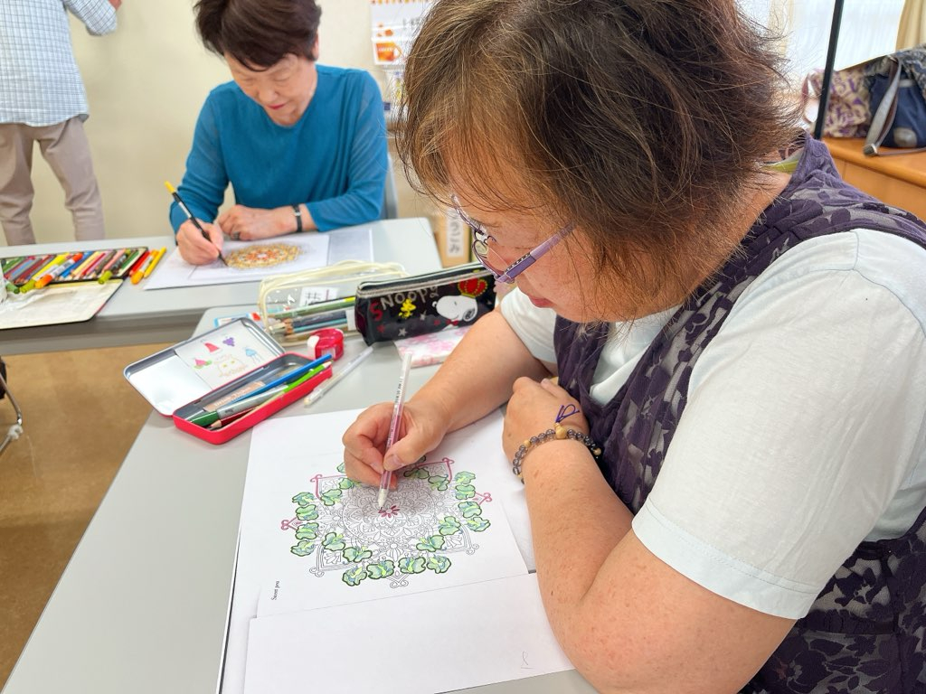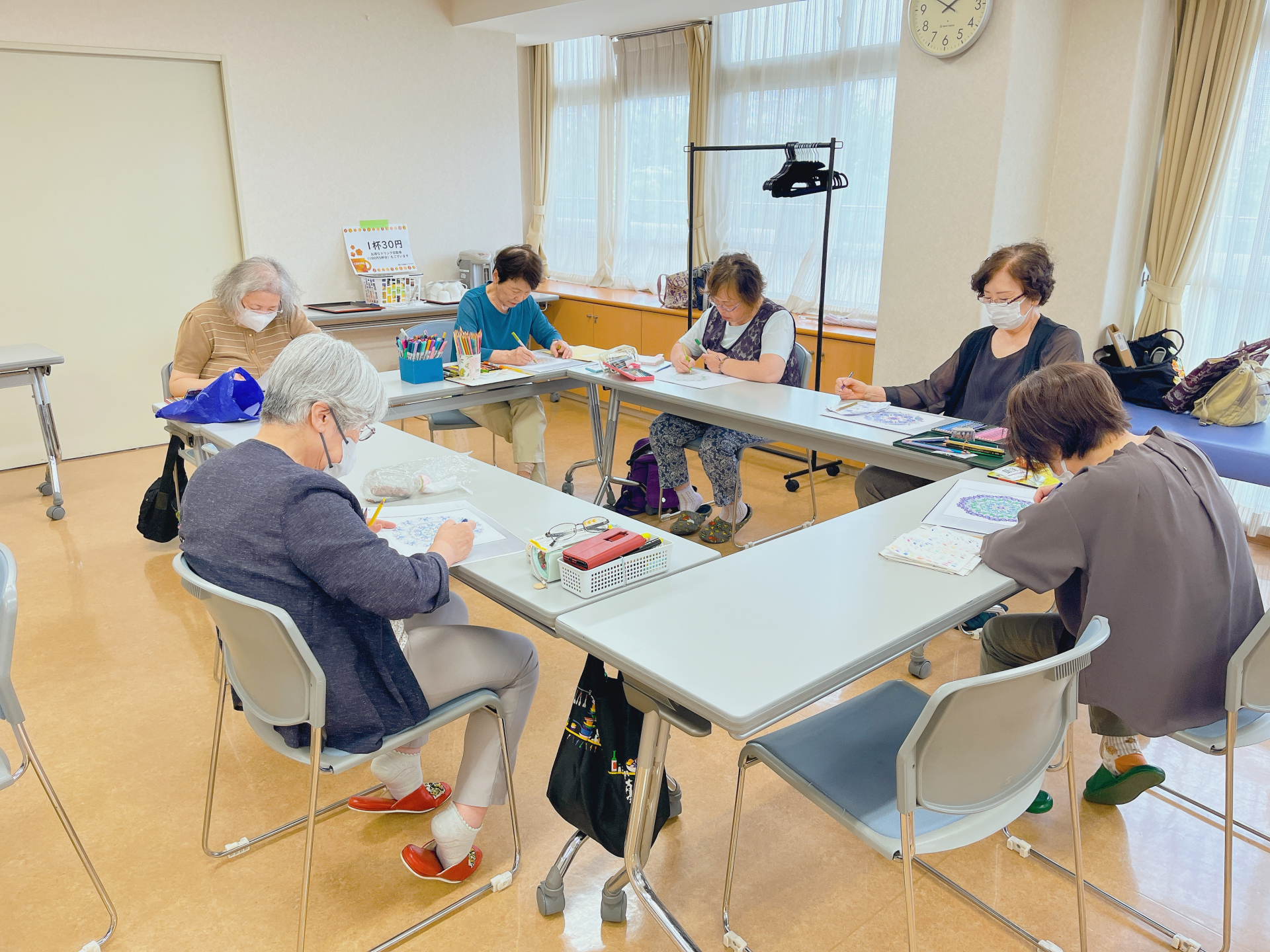 和気あいあいとぬりえを楽しむ方、先生に色のアドバイスを受ける方、それぞれの楽しみ方でまちともカフェの時間を過ごしています(*^-^*)