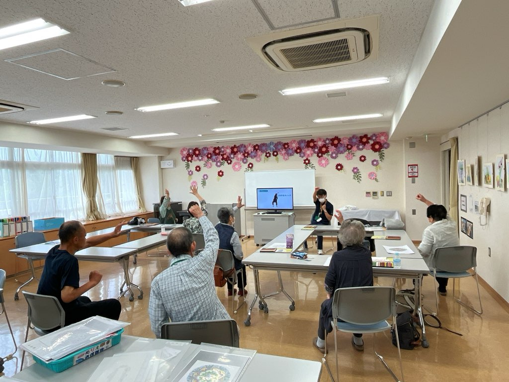 途中で身体を動かしてリフレッシュタイム☆包括職員から熱中症対策についての話をしました!これから始まる暑さに気を付けて過ごしていきましょう!