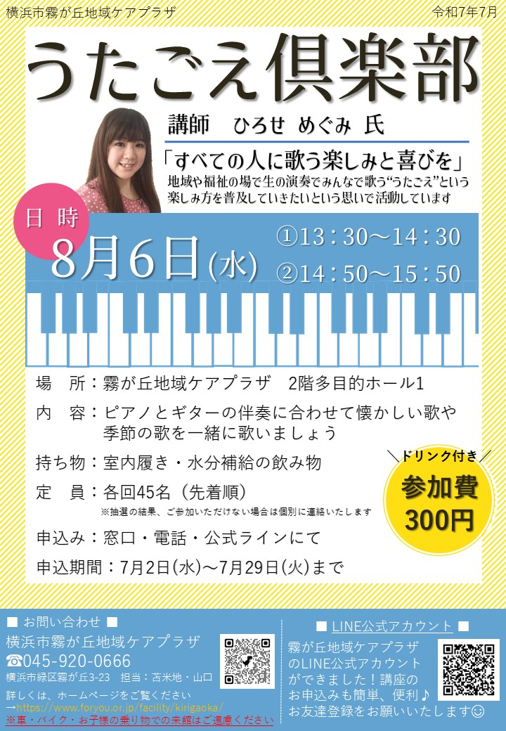 【横浜市霧が丘地域ケアプラザ】うたごえ倶楽部を開催しました♪