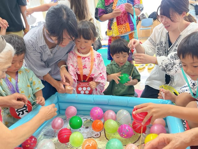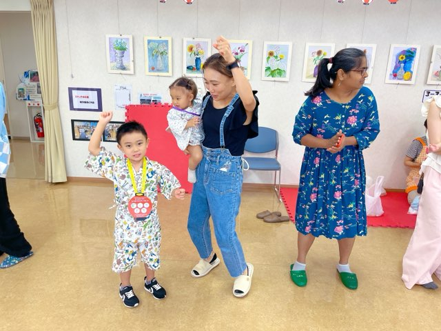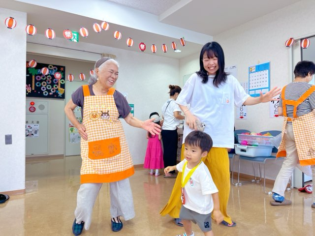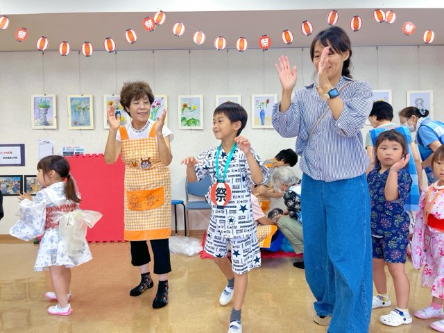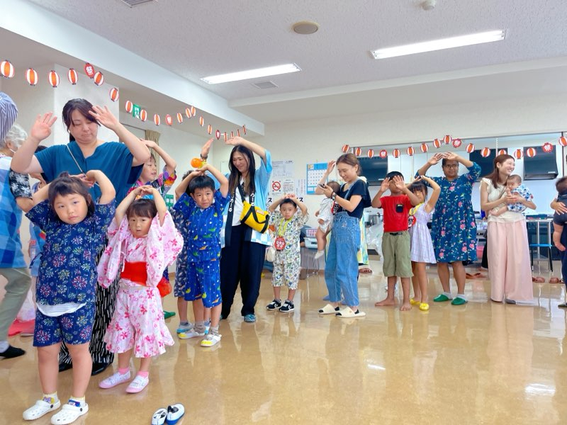 かき氷を食べおわったら、盆踊りを踊ろう♪ボランティアの中に踊りの先生がいらっしゃり、踊りを教えていただきました!大人も子供も全力で夏祭りを楽しみました!