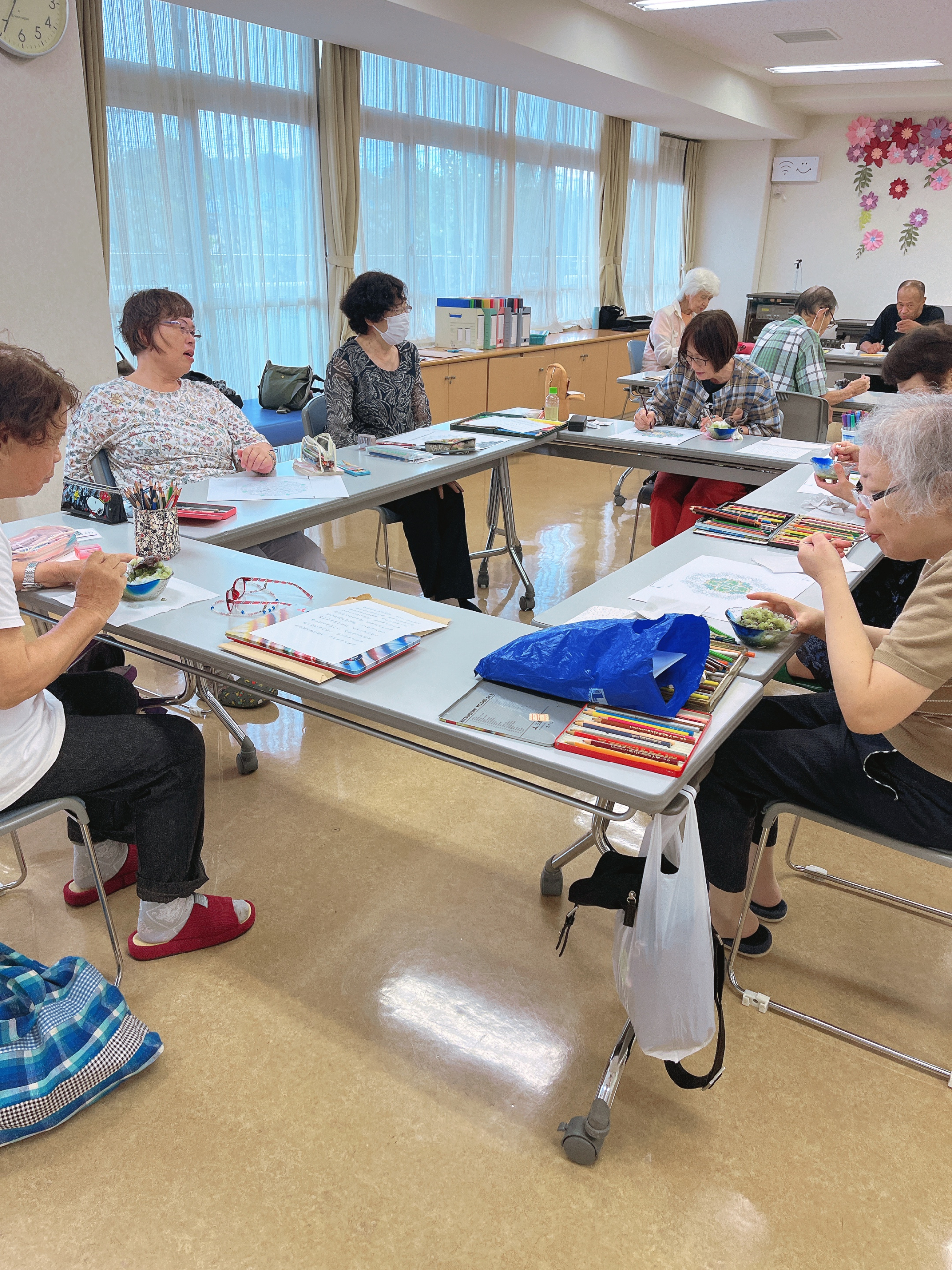 みなさん、それぞれが真剣にぬりえを楽しみ、休憩がてら、お顔の体操!お口をたくさん動かすとほうれい線対策もできる?!というお話をしました!