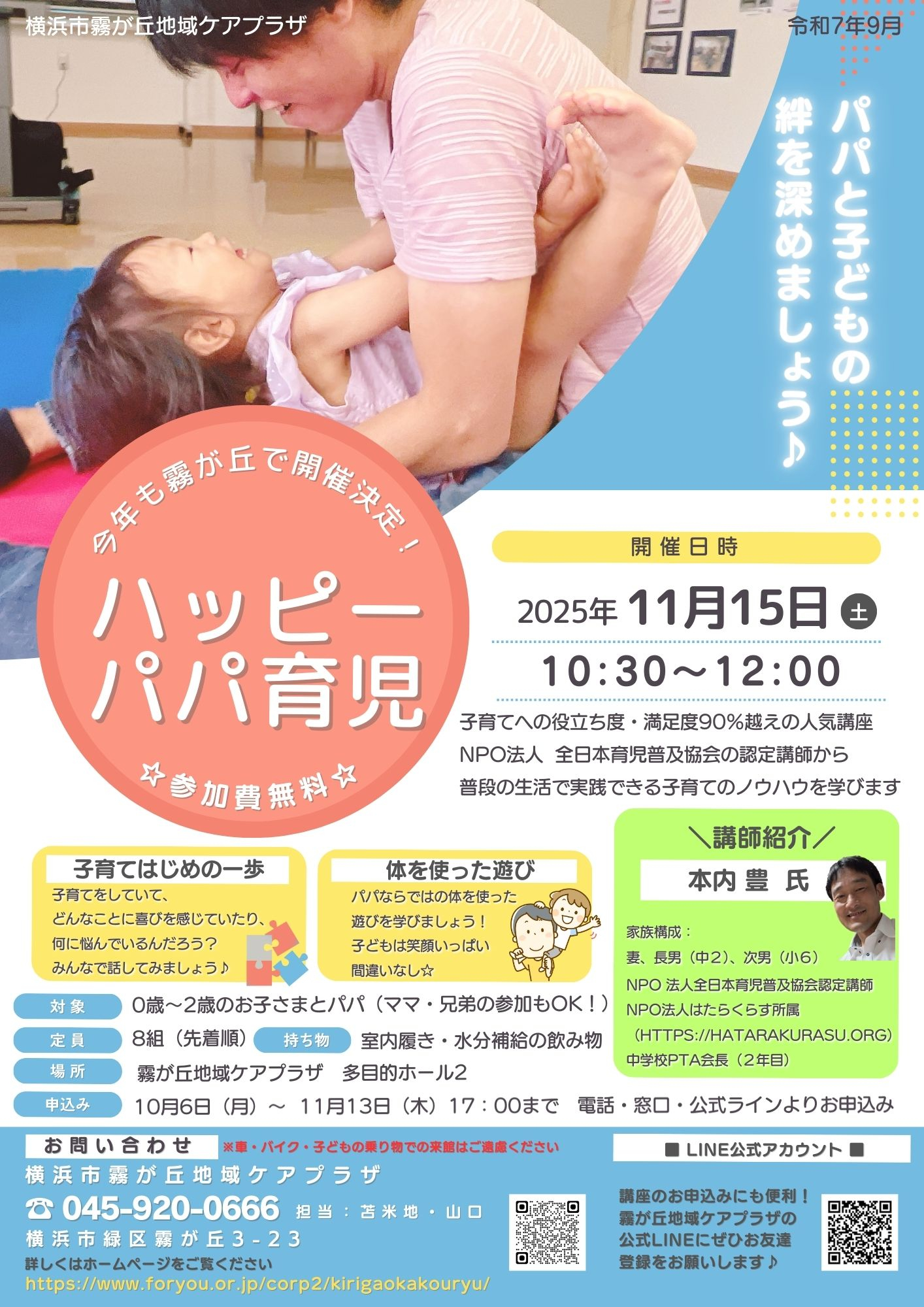 【横浜市霧が丘地域ケアプラザ】ハッピーパパ育児を開催します♪