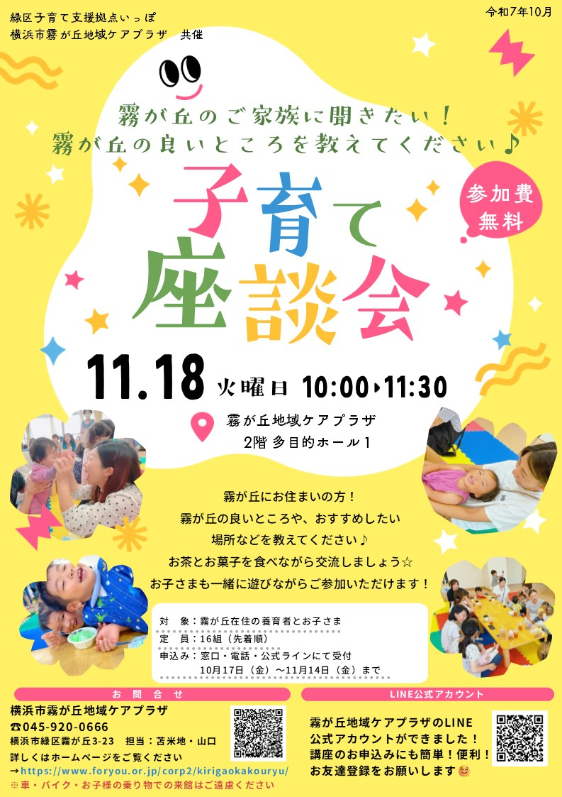 【横浜市霧が丘地域ケアプラザ】霧が丘子育て座談会を開催します♪