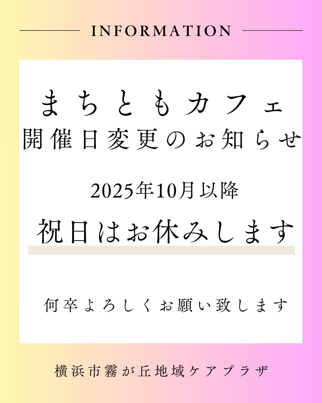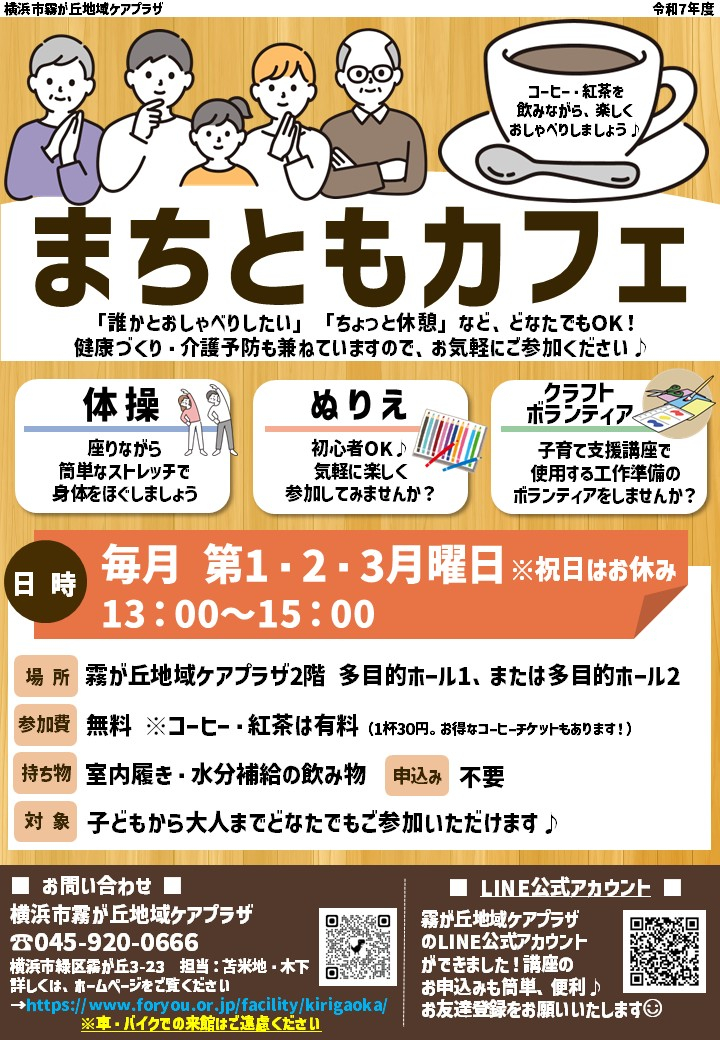 【横浜市霧が丘地域ケアプラザ】まちともカフェについてお知らせ