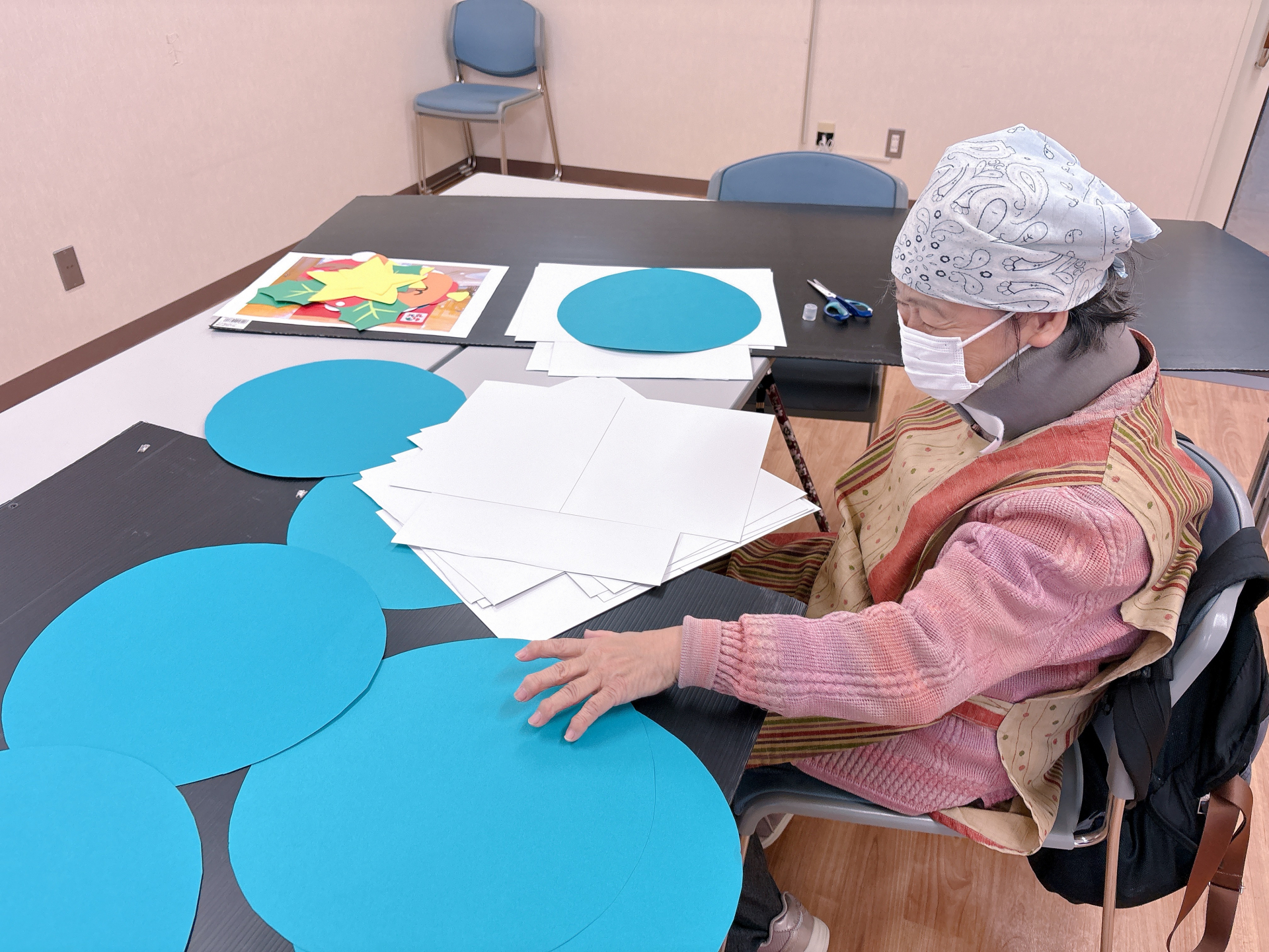 12月1日(月)「まちともカフェクラフトボランティア」では、前回に引き続き、子育て支援事業で使用する物を作成していただきました!