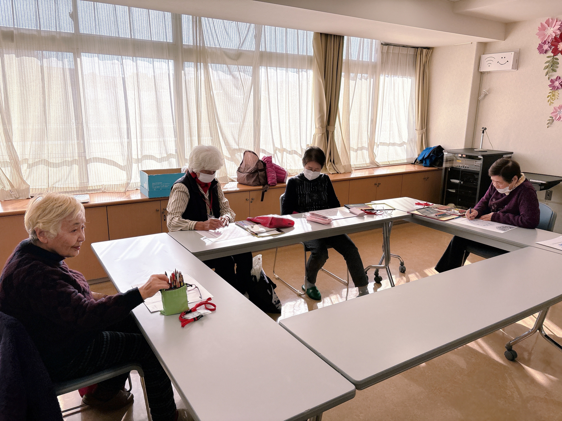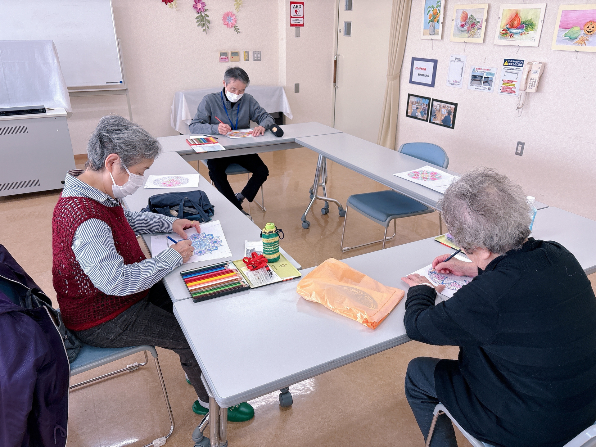 本日のまちともカフェは、やわらかな日差しが差し込むお部屋で、皆さんと一緒にゆったりとぬりえを楽しみました。穏やかな時間の中で、笑顔や会話が自然と広がり、とても温かなひとときとなりました♪