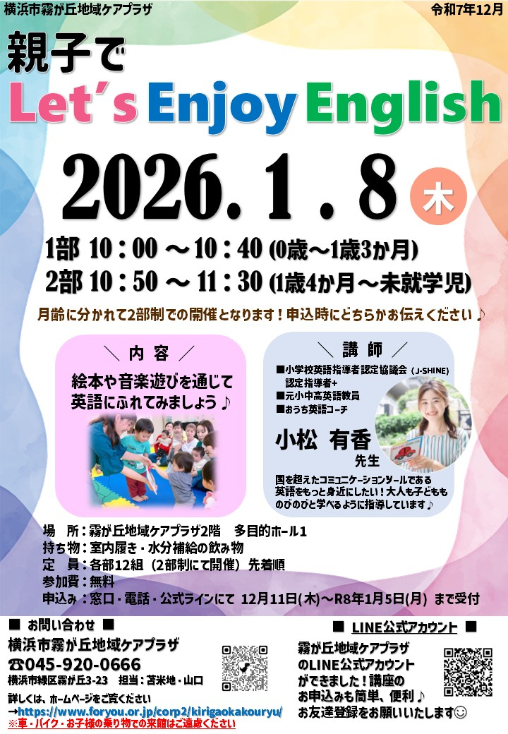 【横浜市霧が丘地域ケアプラザ】受付開始!「親子でLet'sEnjoyEnglish」