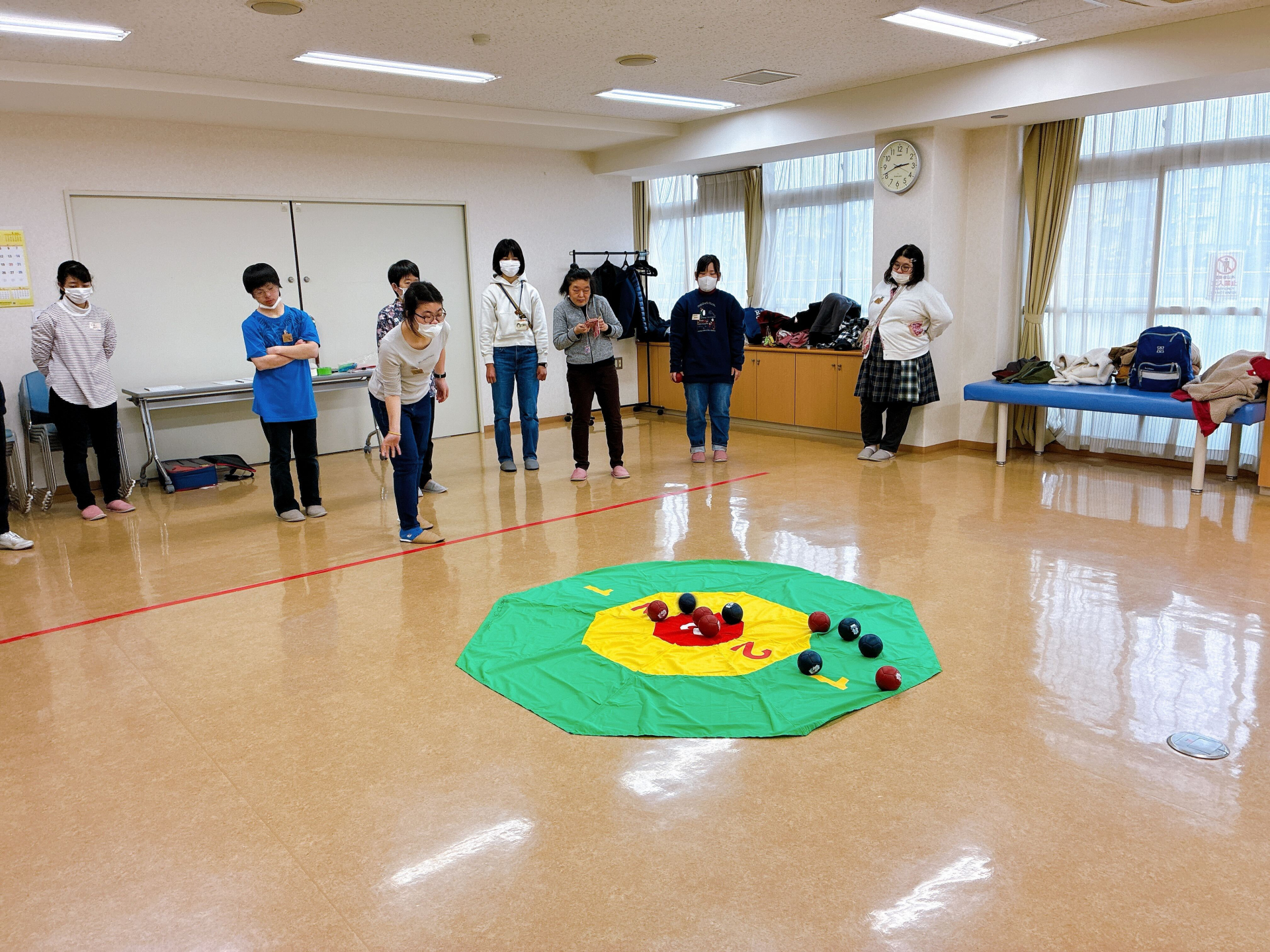 今回は、通常のボッチャに加えて、点数が書かれたシートの上で高得点を狙うゲームにも挑戦しました。