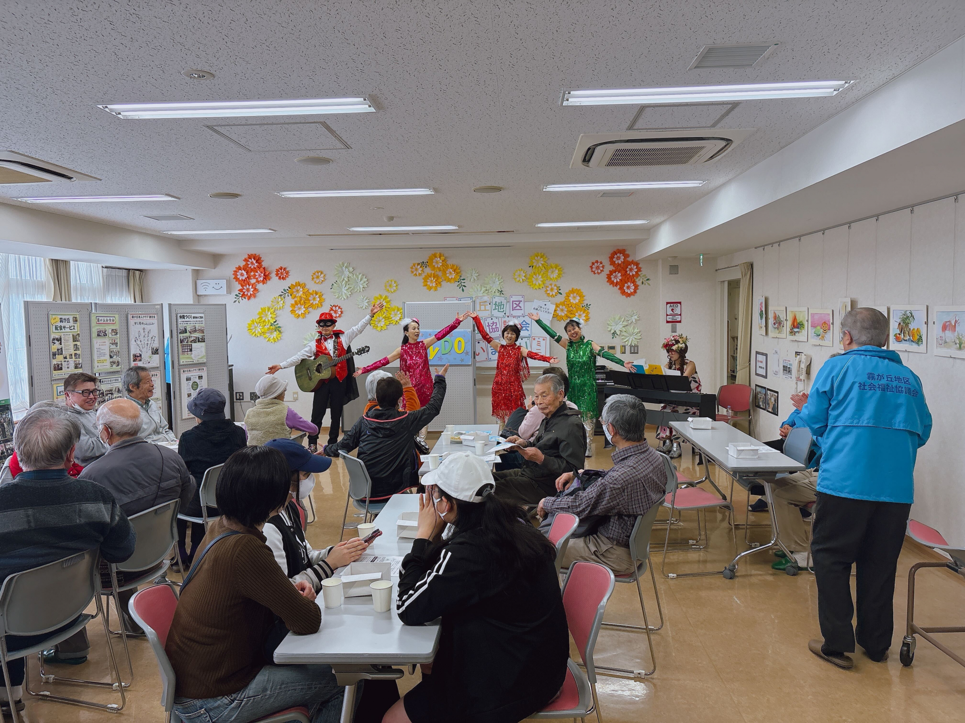会場では、飲み物やお菓子を楽しみながら、霧が丘で活動する団体『MyDO』による昭和歌謡ショーや、kiricafeによるダンスパフォーマンスが披露され、大きな拍手と歓声が響きました。懐かしいメロディーに心が弾み、ダンスのリズムに自然と体が動くような、そんな楽しいひとときでした。
