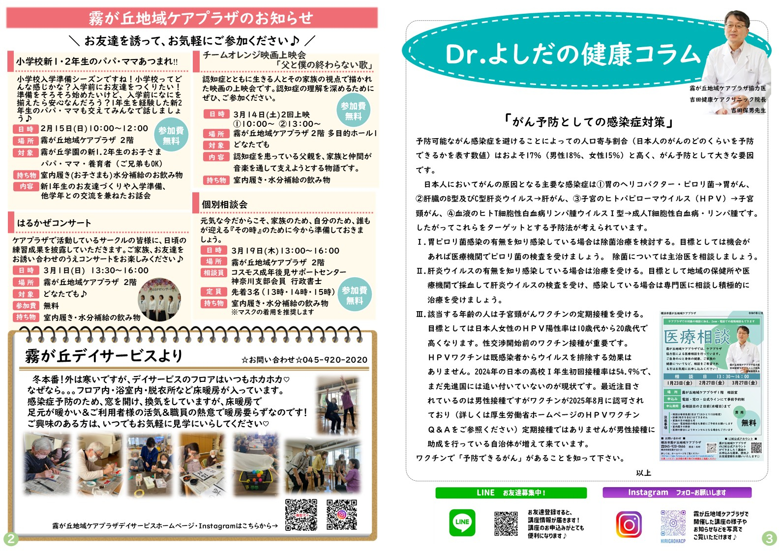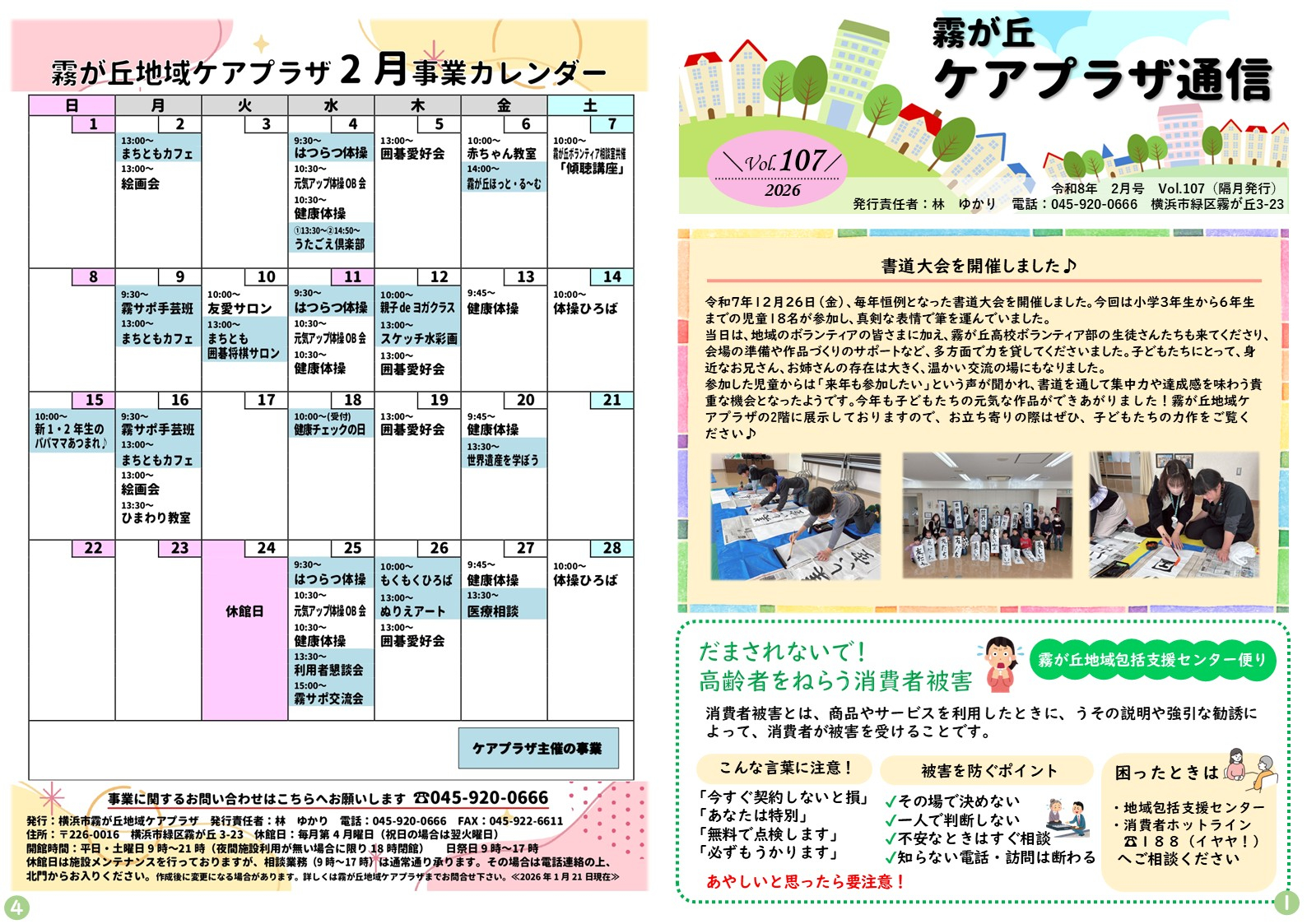 2026.01.27 お知らせ 【横浜市霧が丘地域ケアプラザ】ケアプラザ通信2月号ができました♪ Tweet シェアする 横浜市霧が丘地域ケアプラザ「ケアプラザ通信2月号」が発行されました! ぜひ、ご覧ください(*^-^*) 横浜市霧が丘地域ケアプラザH.T 一覧へ戻る