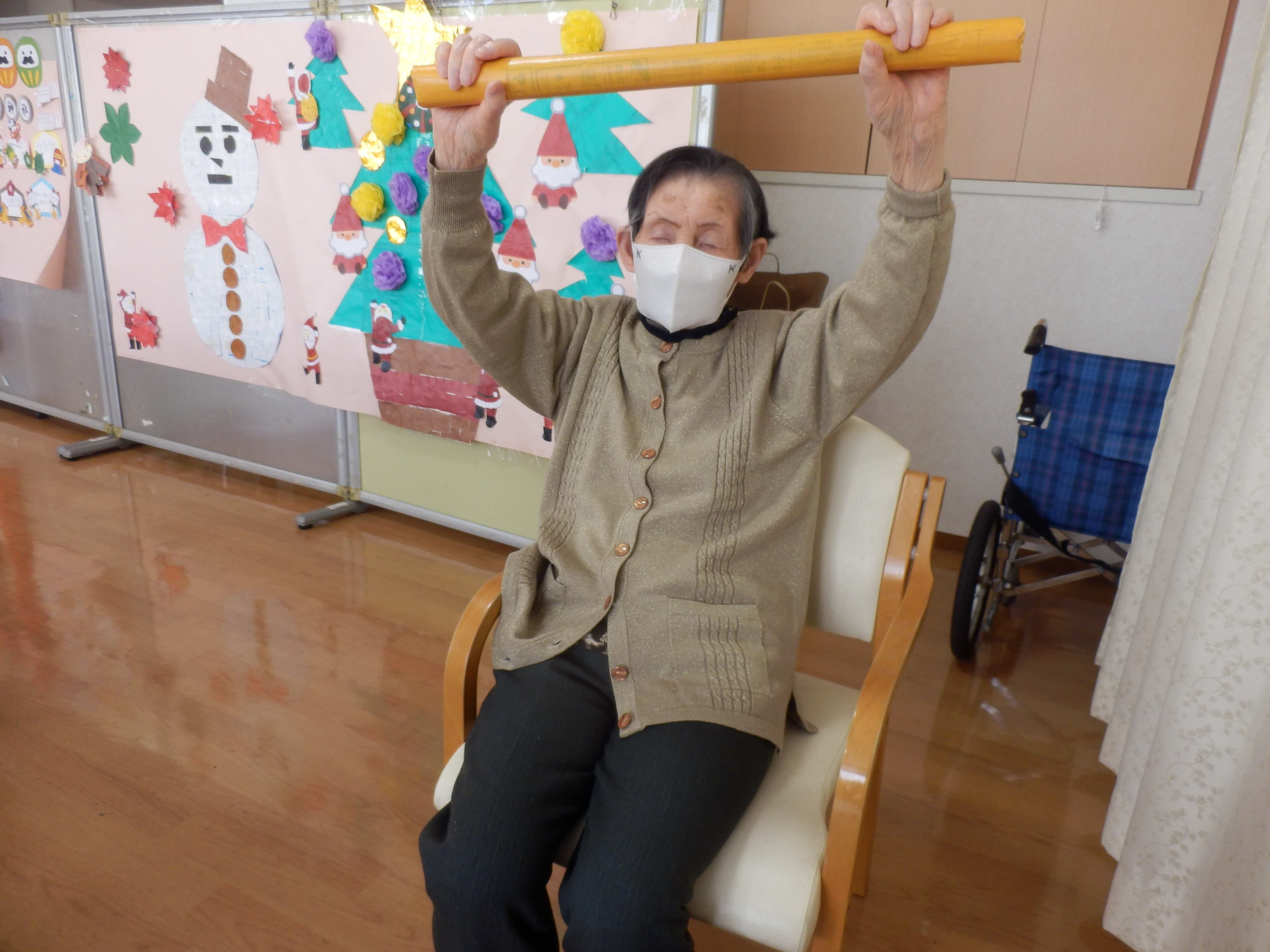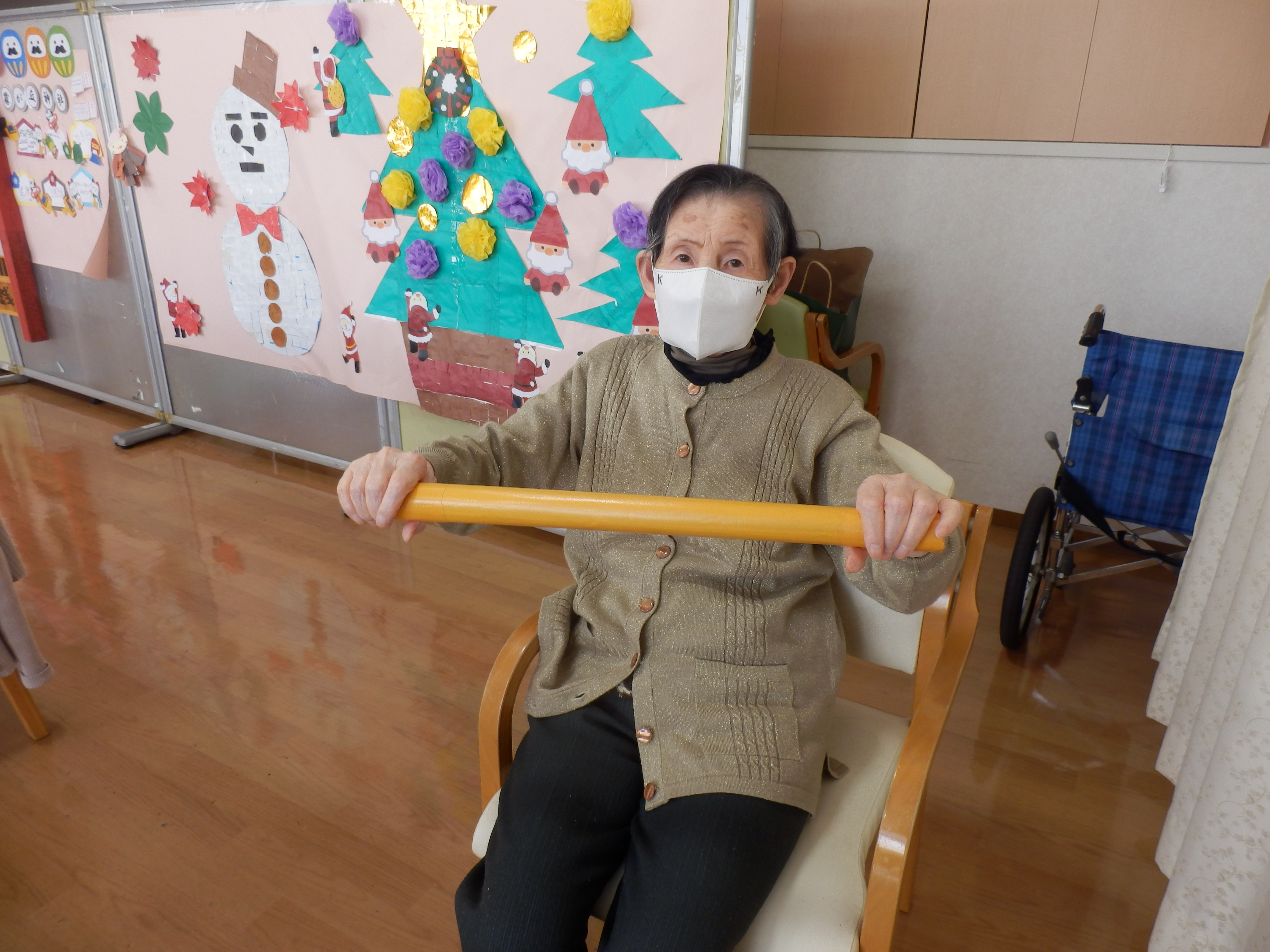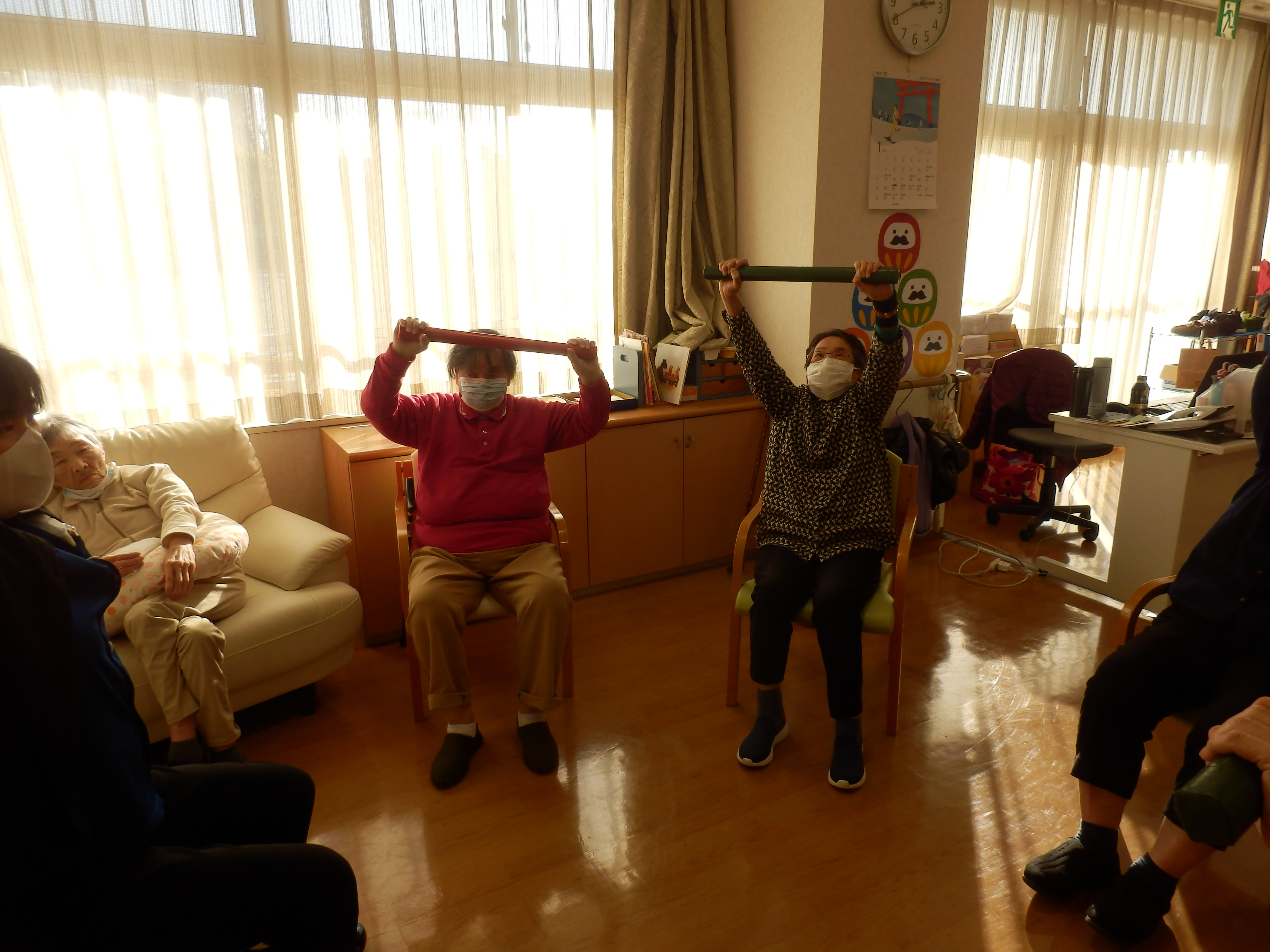 午後のレクレーション時間に棒体操を行いました。
