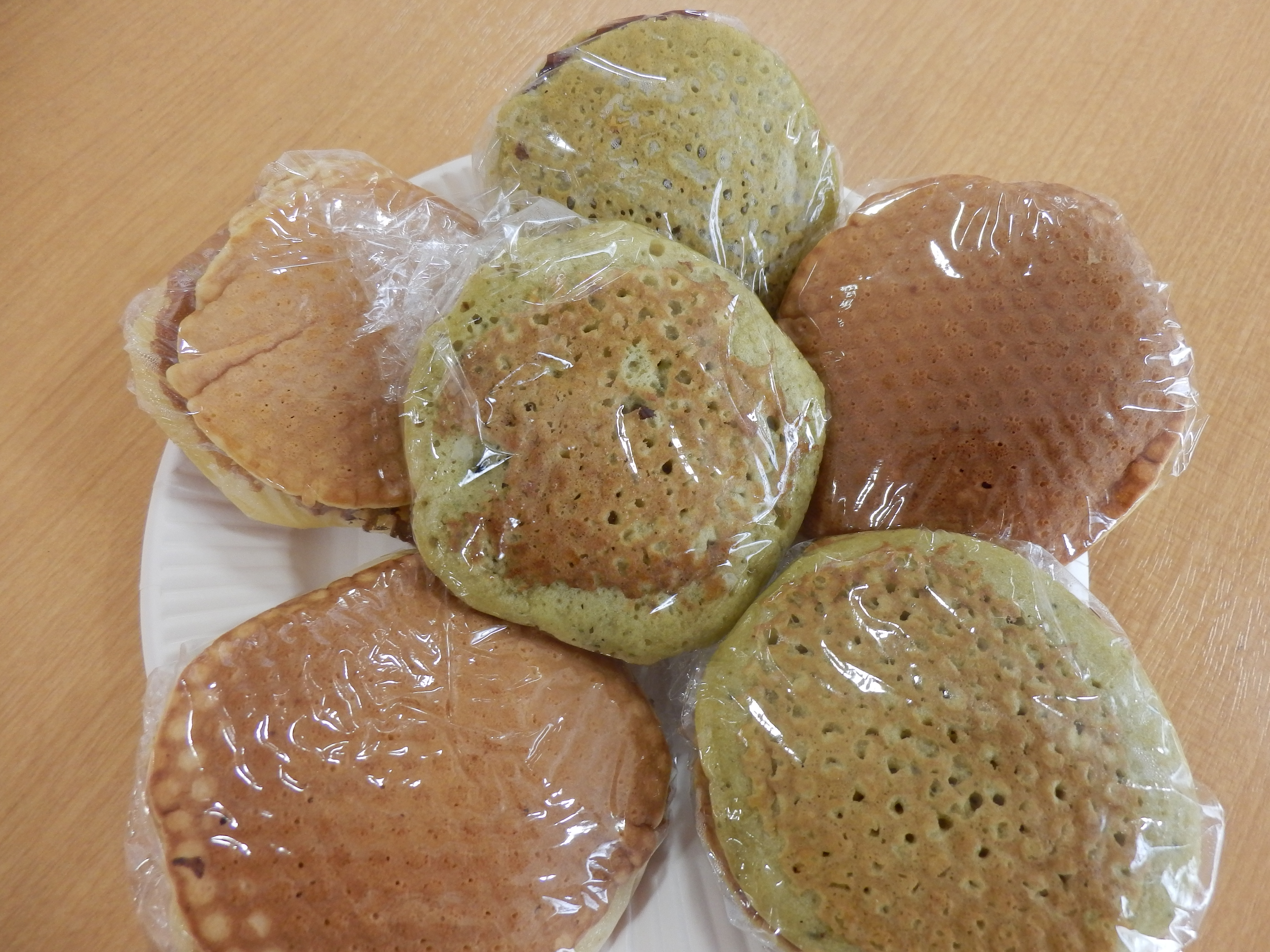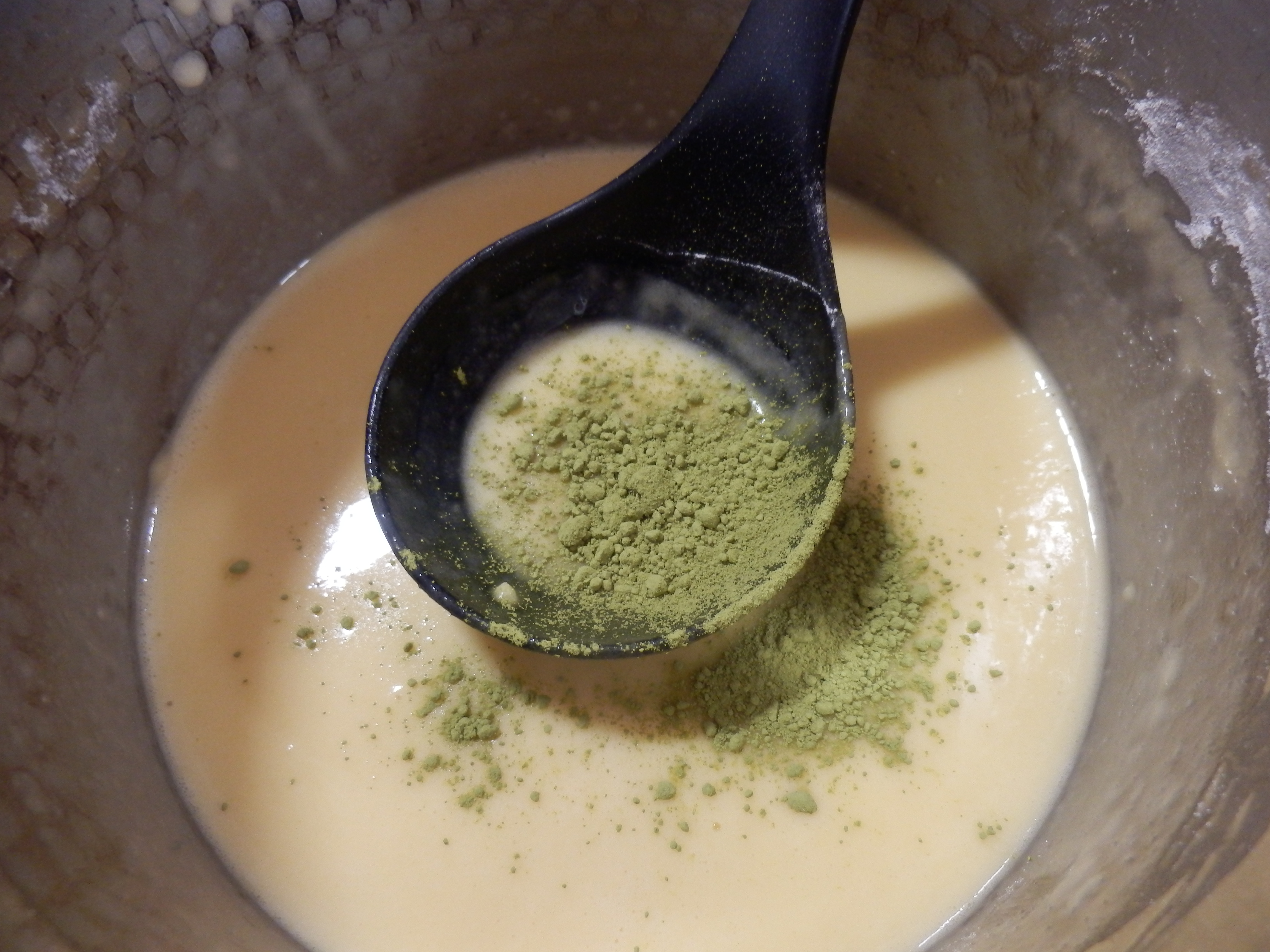 通常の生地を人数分焼いた後に、抹茶を入れ抹茶バージョンも作ります。