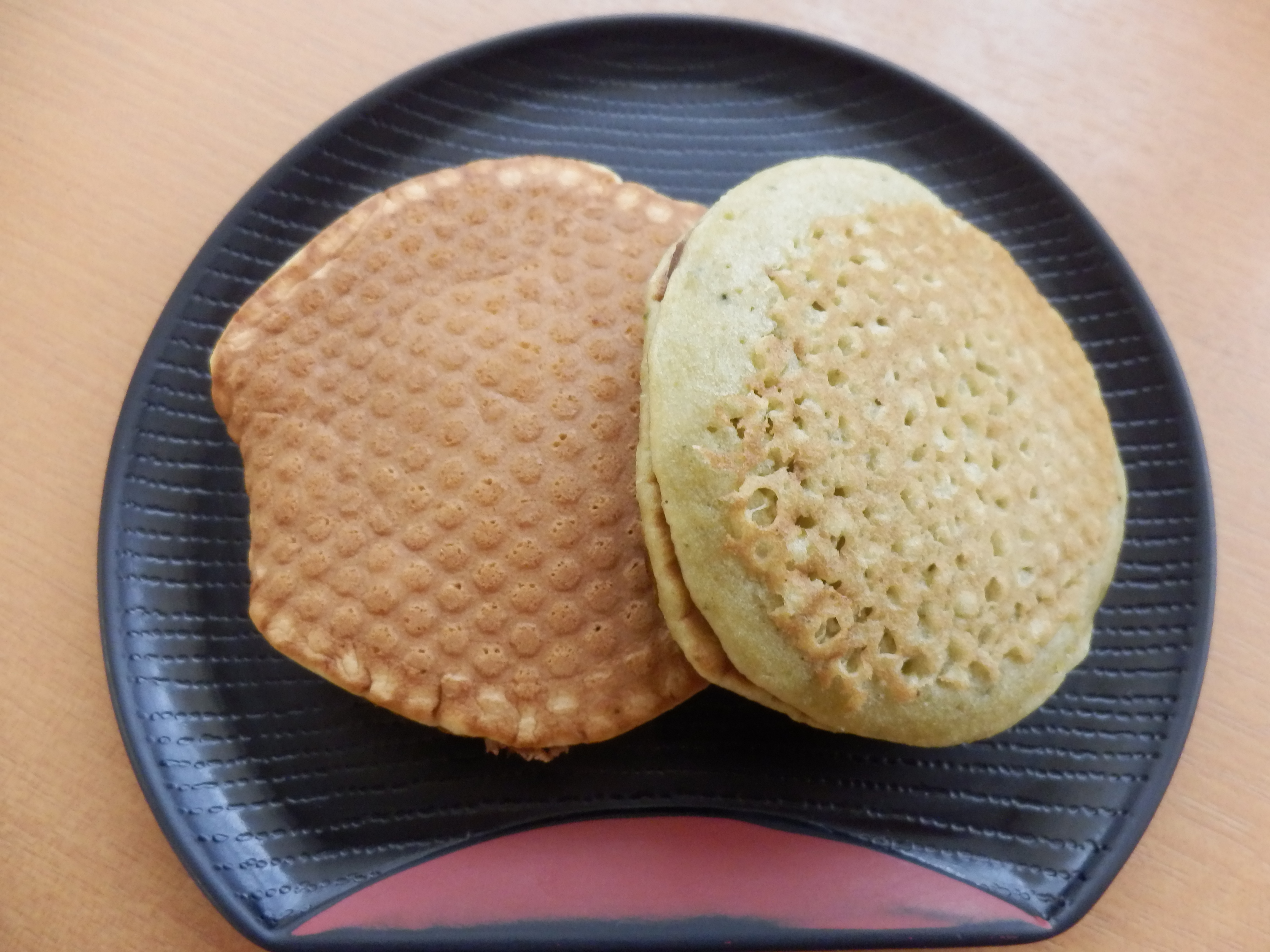 どら焼きです♡今回は通常バージョンと抹茶バージョンの2種類の生地を作りました。