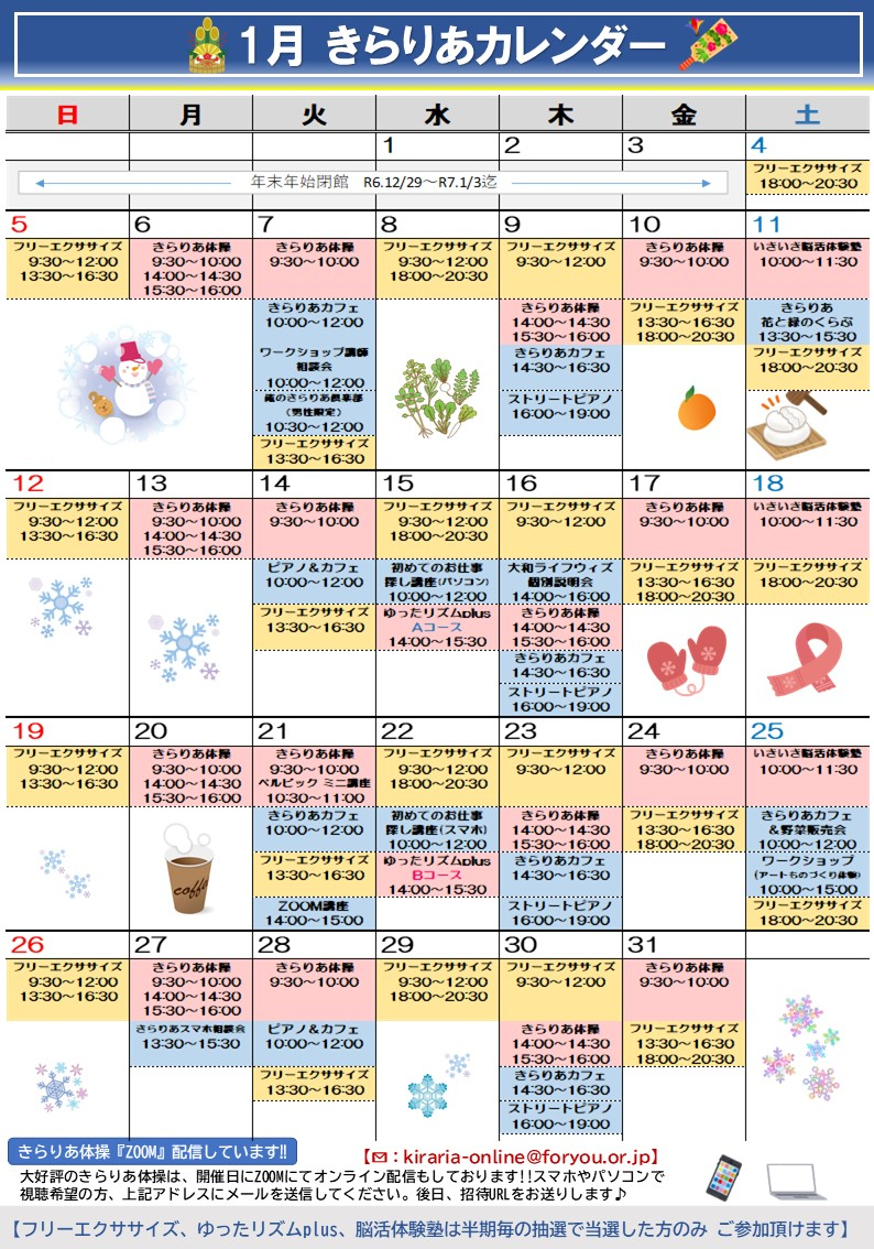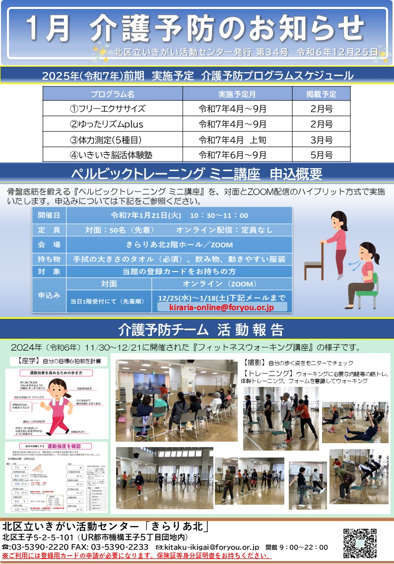 2024.12.25 お知らせ 【介護予防のお知らせ1月号】 Tweet シェアする 【介護予防のお知らせ1月号】 介護予防のお知らせ1月号をお知らせします。 前の記事 2024.12.28 お知らせ 初心者向けスマホ講座【カメラとLINE】開催いたしました 次の記事 2024.12.25 お知らせ 【きらりあ通信1月号】 一覧へ戻る