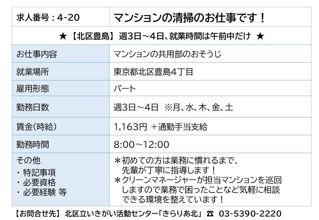 求人票は5件あります。下記画像↓をクリックしてご覧ください。【エリア:北区王子、堀船・豊島区・足立区】