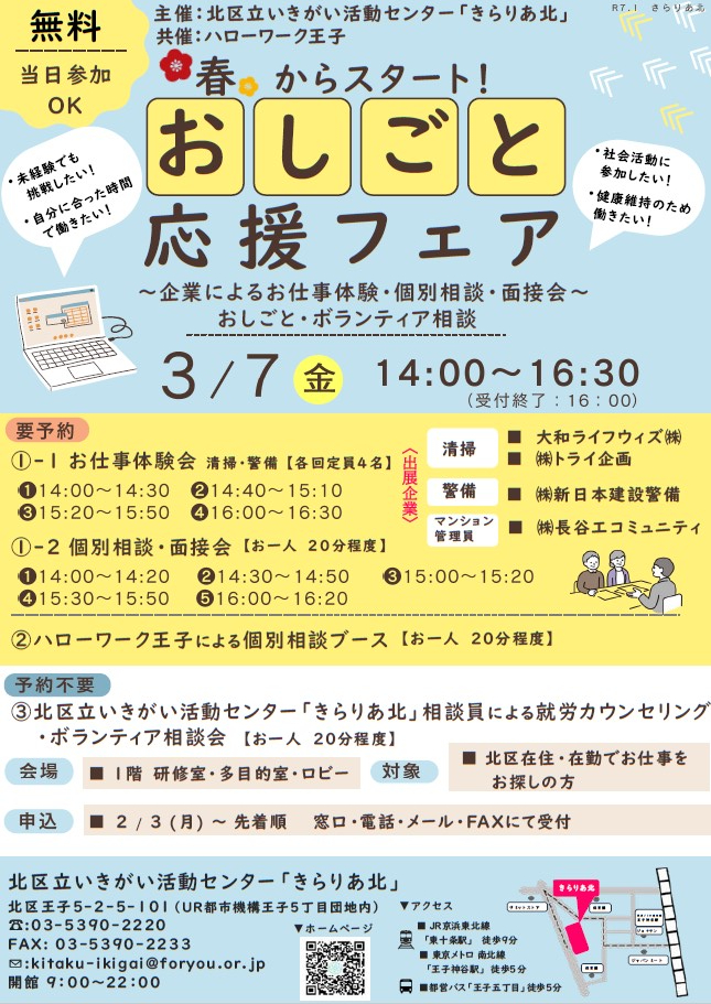 【3/7(金)14:00~16:30 お仕事応援フェア】出展企業・求人情報を公開! 2/3(月)より参加者受付が開始します!
