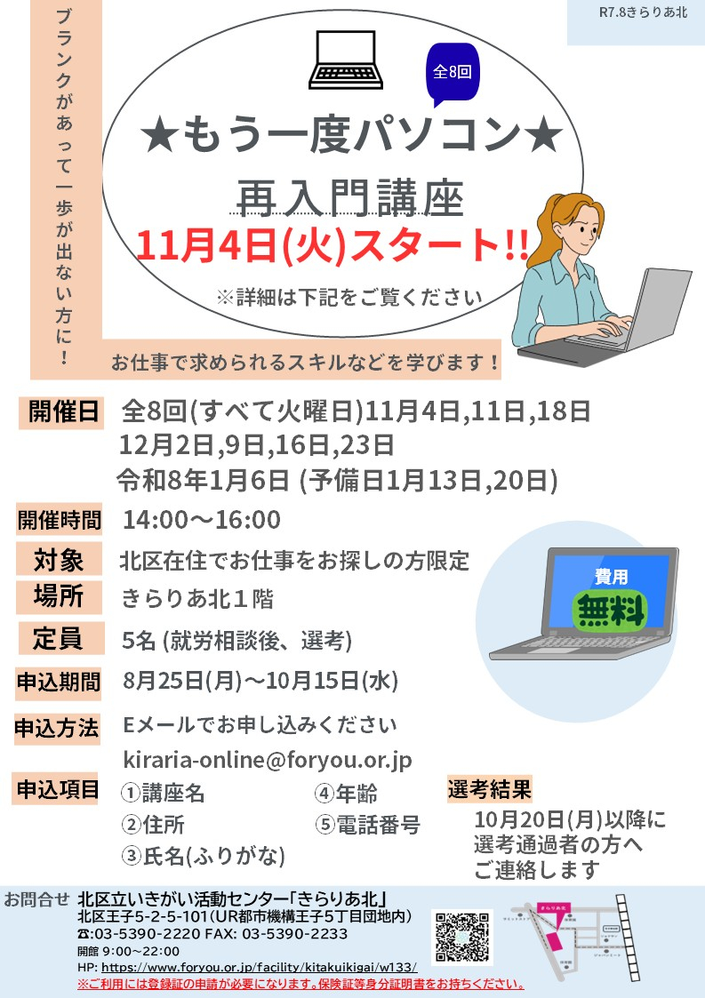 ★募集期間延長★【もう一度パソコン再入門講座】のお知らせです‼