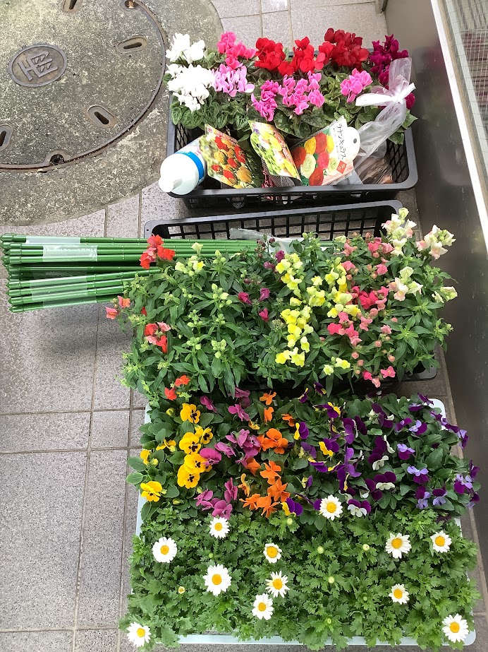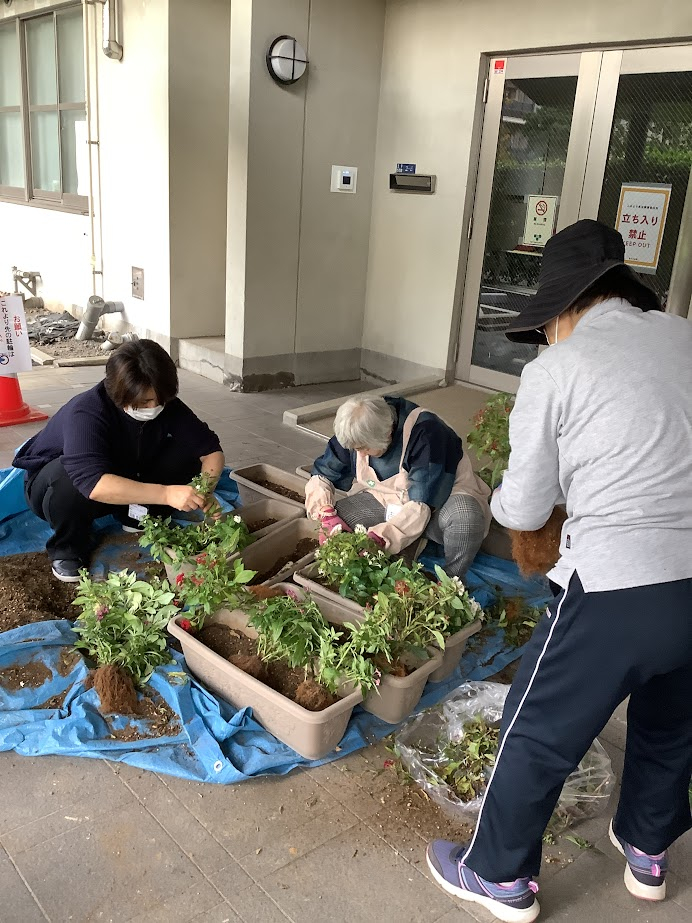 この日は『花苗の植え替え』でした。気温はひんやりでしたがお天気も良くほっとしました!(^^)!