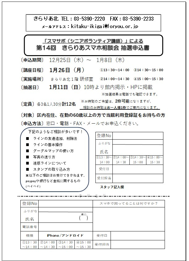 1/26(月) スマホ相談会 参加者募集スタート✨