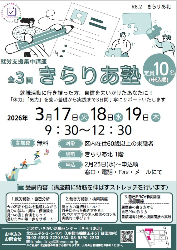 シニアの就労支援・集中講座『きらりあ塾』のご案内