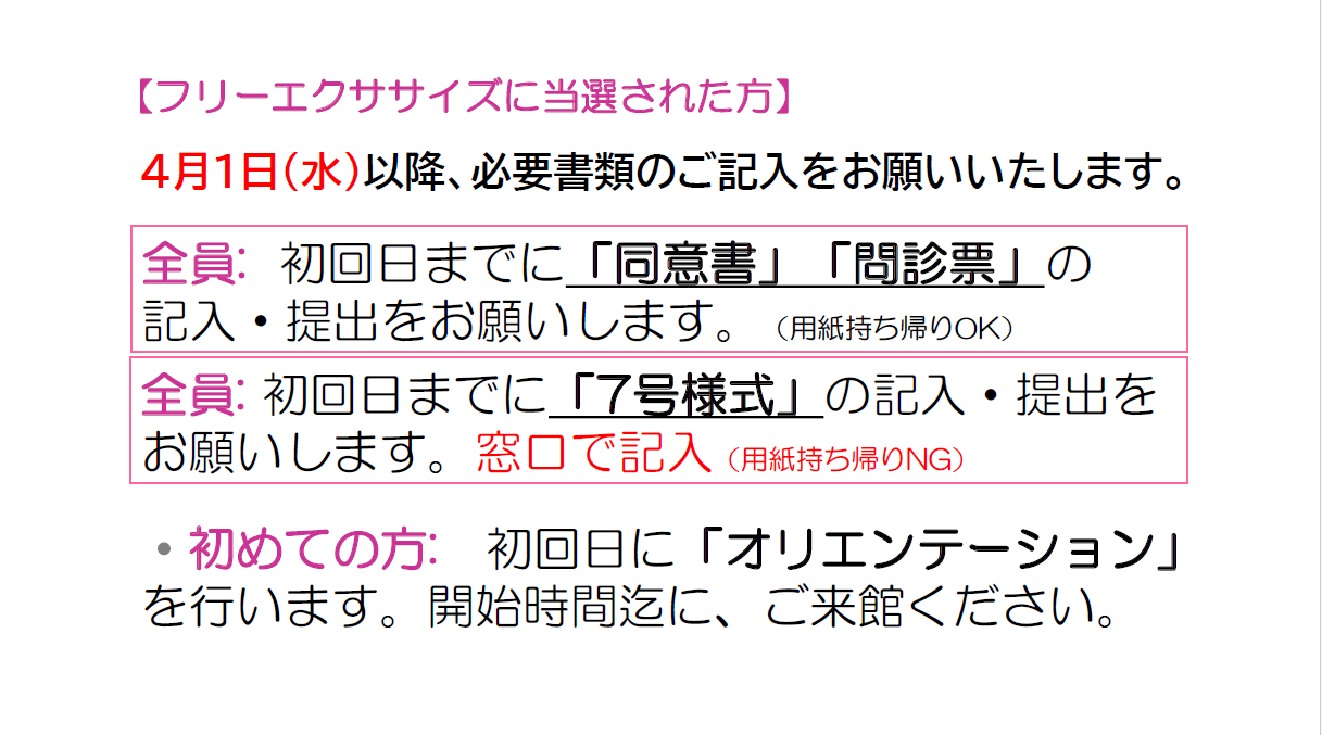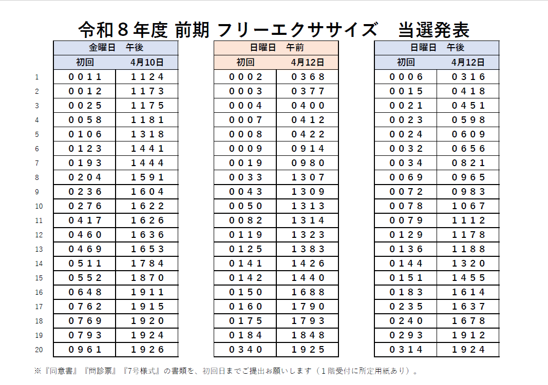 「フリーエクササイズ」の当選結果を発表させていただきます。