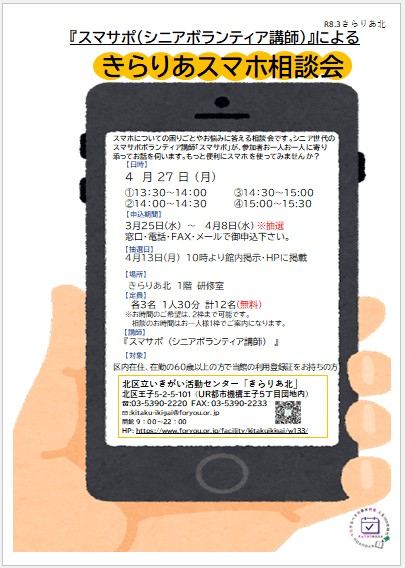 4/27(月) スマホ相談会 参加者募集スタート✨