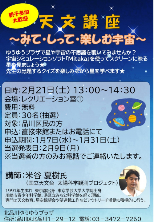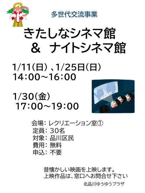 2026.01.25 きたしなだより2月号を発行しました! お知らせ #きたしなだより #2月号 2026.01.24 ✿押し花「おうち」カード作り✿ 活動報告 #押し花 #多世代交流事業 2026.01.23 今月2回目の編み物サロンです。 活動報告 #編み物サロン 2026.01.18 盛だくさんのeスポーツでした♪ 活動報告 #eスポーツ 2026.01.16 1月~3月は2クラス!【いきいきいきいきストレッチ&リズム体操】 活動報告 #いきいきストレッチ&リズム体操 #高齢者支援事業 2026.01.15 初心者向けリコーダー教室♪ 活動報告 #北品川ゆうゆうプラザ #リコーダー 2026.01.14 ダーツに挑戦! 活動報告 #eスポーツで遊ぼう 2026.01.14 祝日もeスポーツで遊ぼう! 活動報告 #eスポーツで遊ぼう 2026.01.09 Let's計算脳トレ今年も始まりました! 活動報告 #北品川ゆうゆうプラザ #計算脳トレ #脳トレ 2026.01.09 おはなしのくに~絵本の読み聞かせ・紙芝居~ 活動報告 #絵本読み聞かせ 2026.01.06 【募集中】天文講座~みて・しって・楽しむ宇宙~ 活動報告 #天文講座 #北品川ゆうゆうプラザ 2026.01.06 1月のきたしなシネマ館&ナイトシネマ館 活動報告 # 北品川ゆうゆうプラザ #昔懐かしの映画 #ナイトシネマ館 2026.01.06 フレイル予防体操と呼吸法でめざせ健康長寿! 活動報告 # 北品川ゆうゆうプラザ #フレイル予防体操 #呼吸法 2026.01.04 令和8年、今年初のeスポーツです♪ 活動報告 #eスポーツ 2025.12.27 フォーユー体操 今日も笑いました‼ 活動報告 #フォーユー体操 1 2 3 … 57