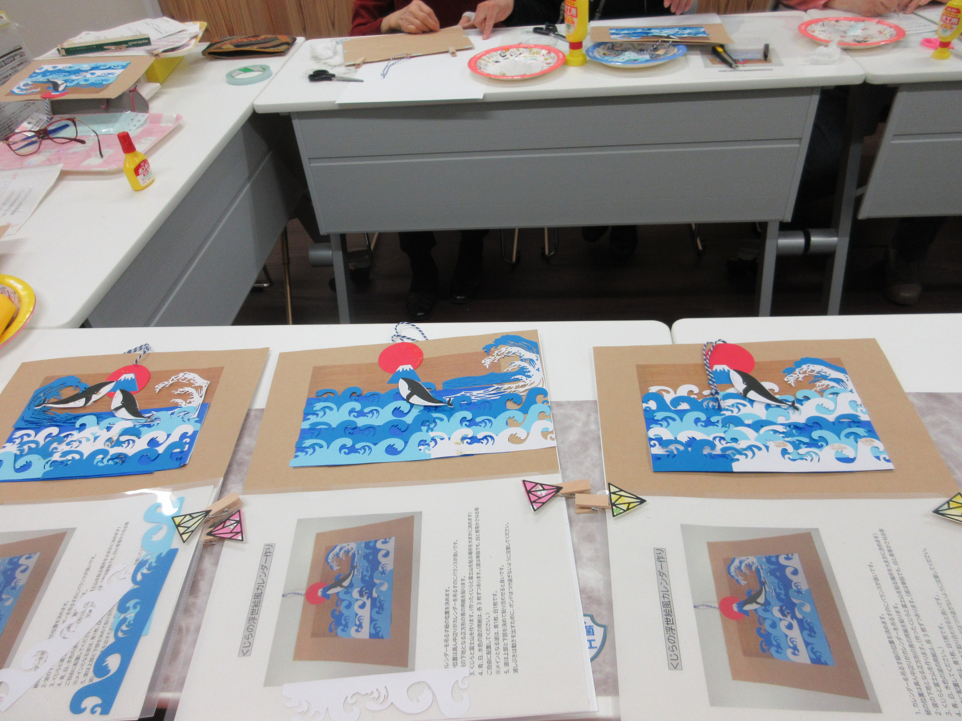 12月13日、ペーパークラフトサロンでは、縁起の良いくじらのカレンダーを作りました。