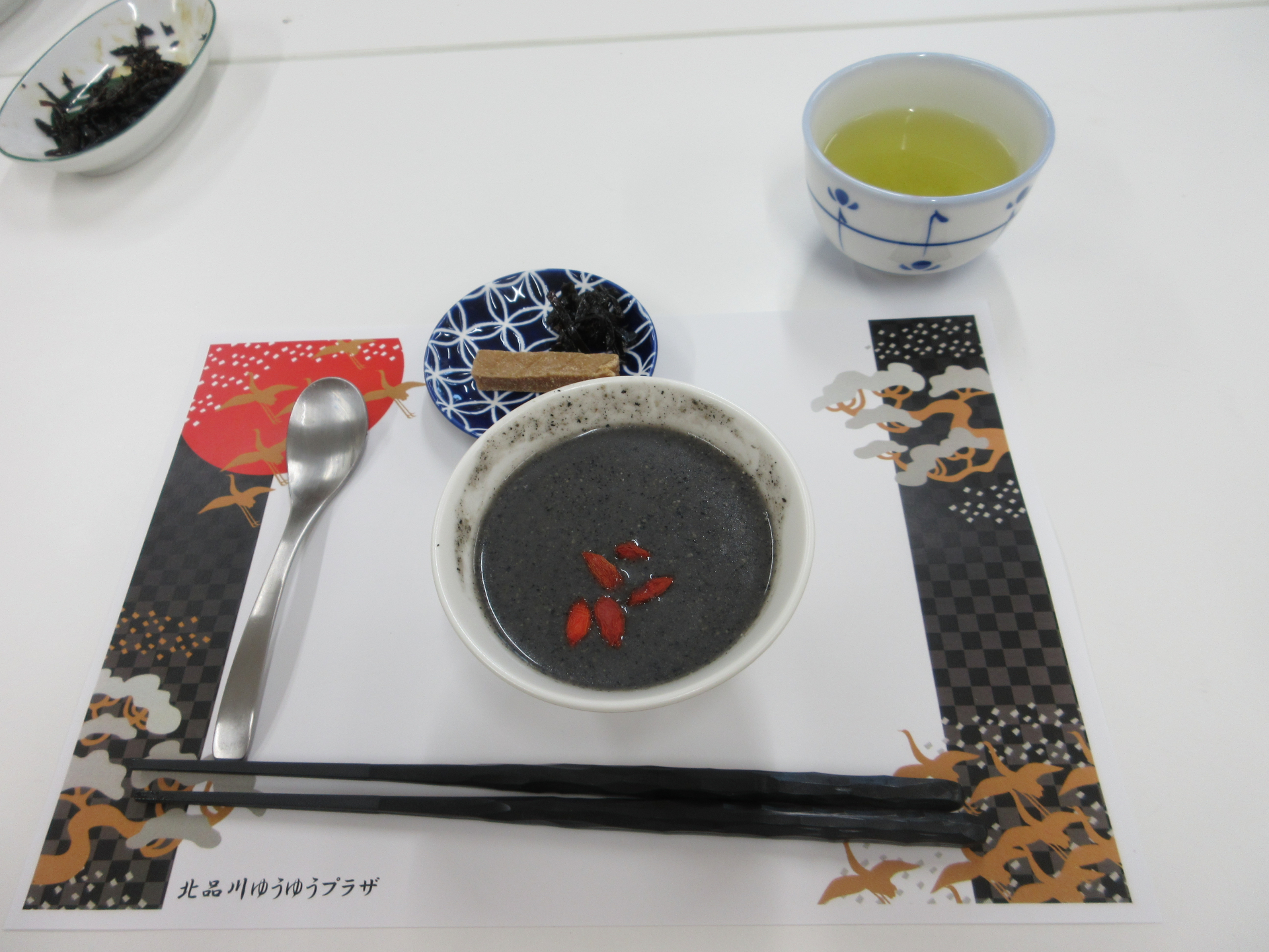 【健康クッキングサロン】大寒に栗と黒ごまのお汁粉です。