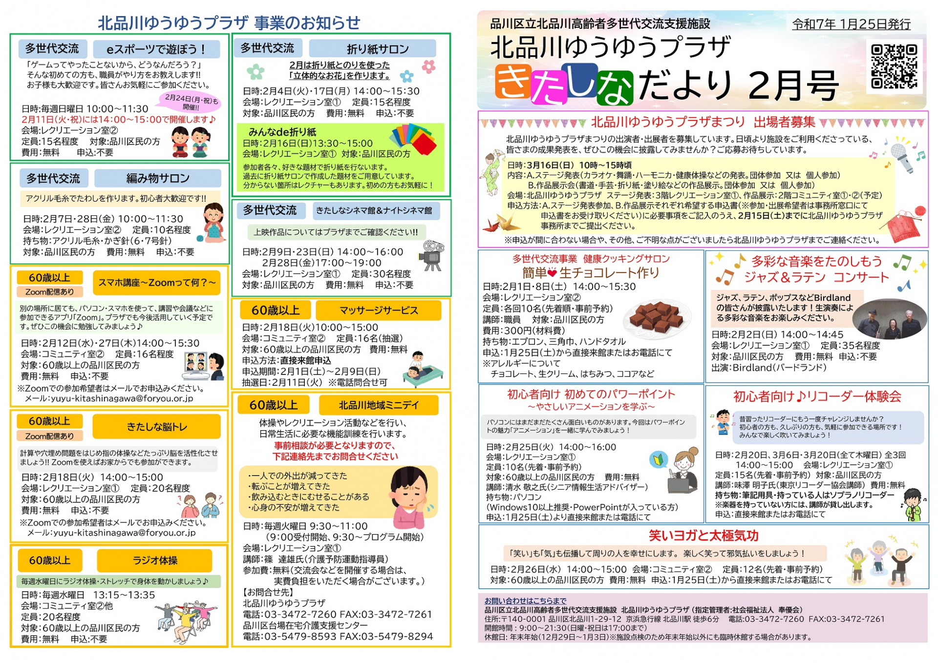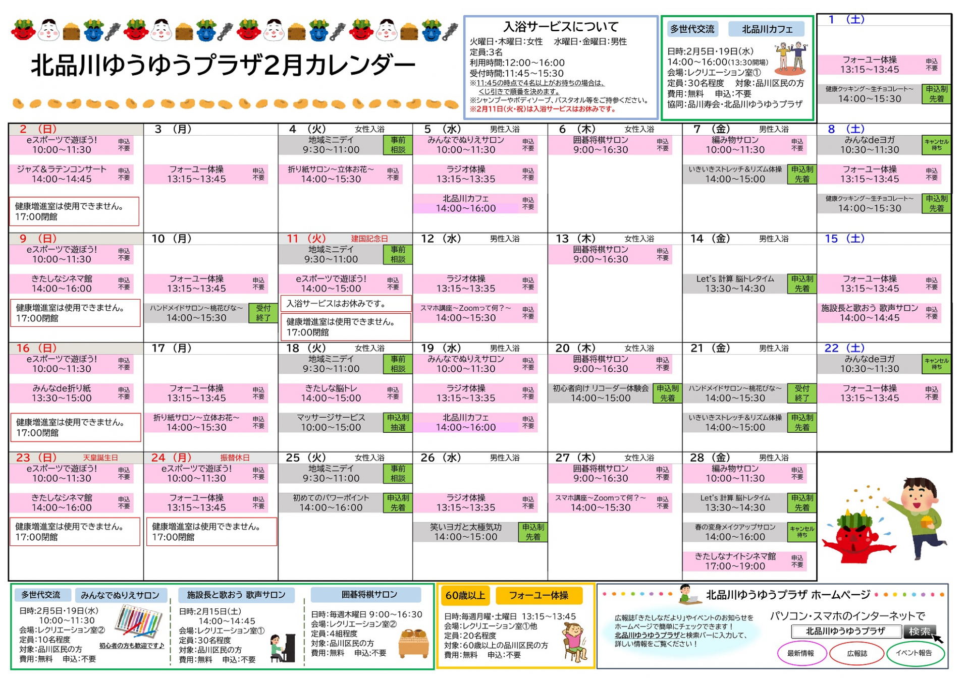 2月も北品川ゆうゆうプラザへご来館お待ちしております。