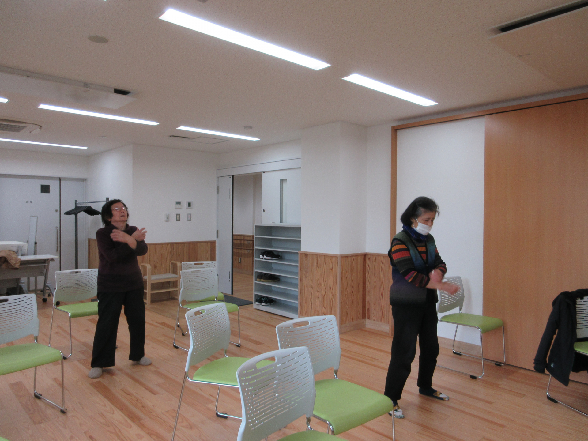 いつものラジオ体操第一と第二をしっかりやると「疲れますよね!」ということで終わった後3人で楽しく