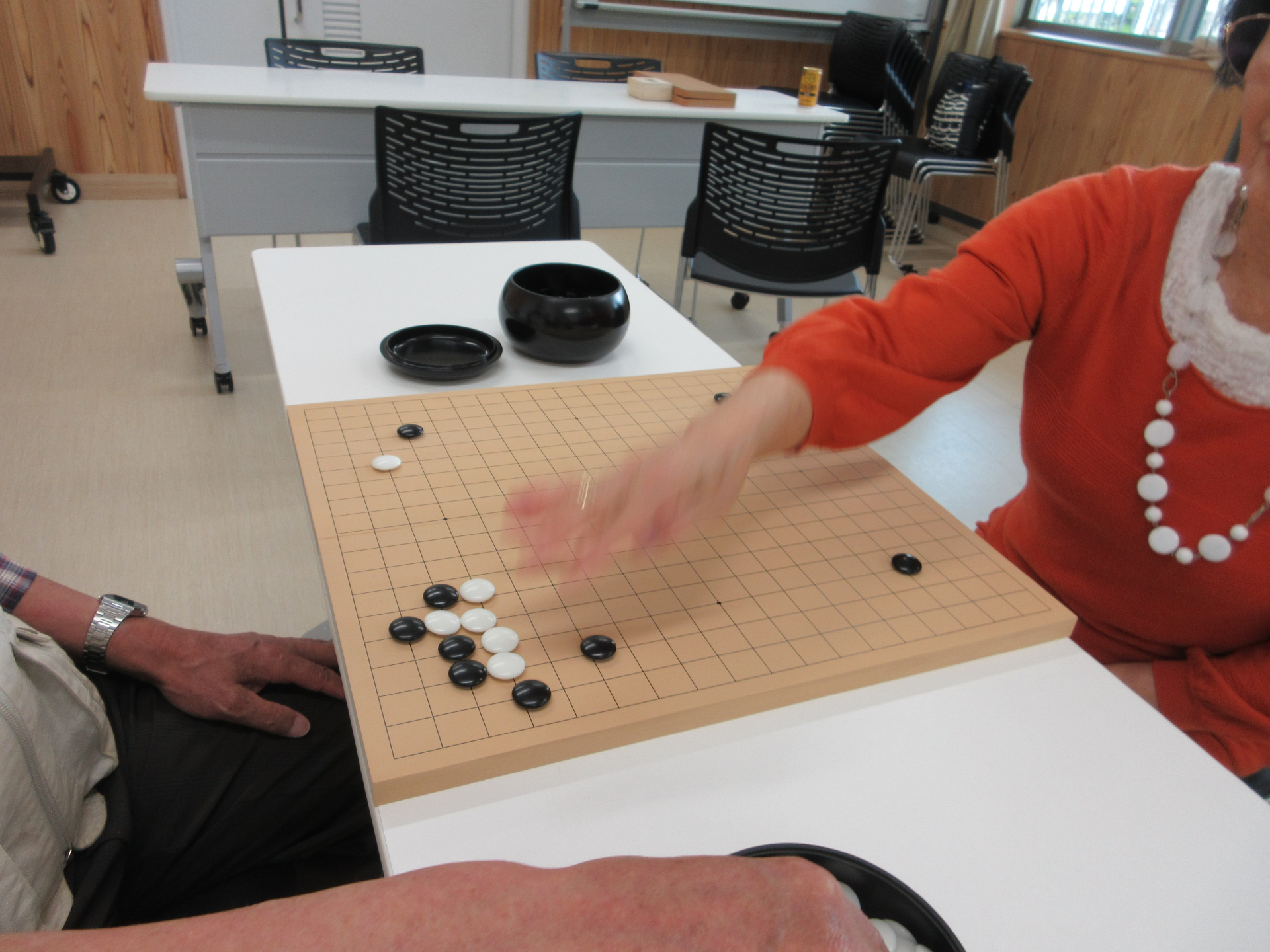 しかし開始すると、静かに碁石の音だけが聞こえます。集中して碁を打っていらっしゃるんですね。