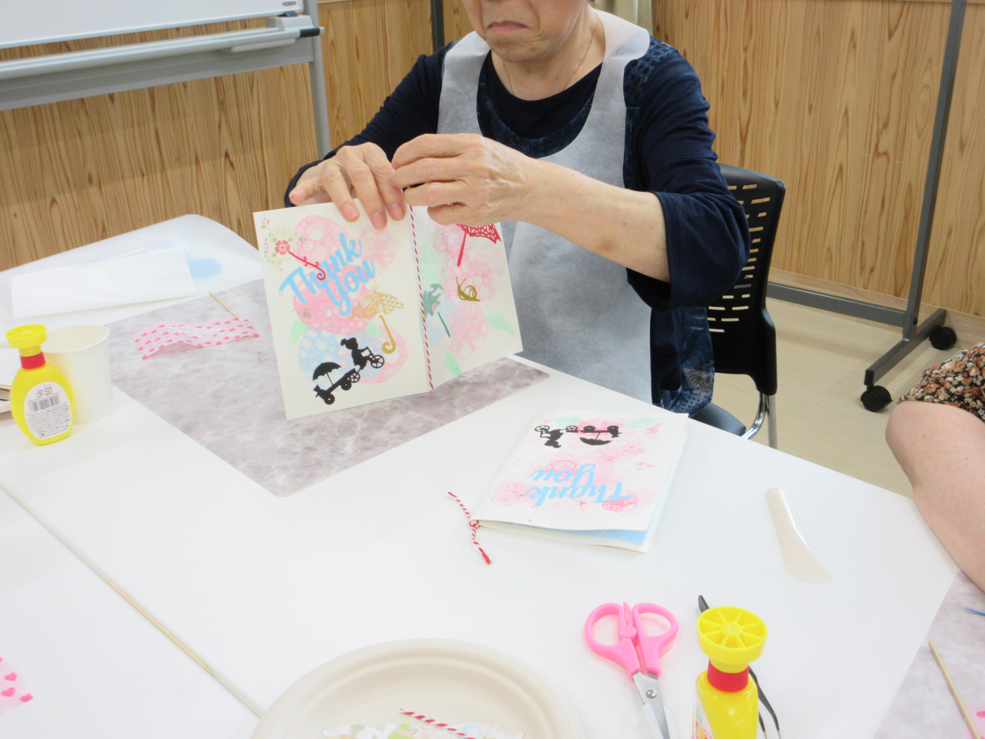 傘などのパーツを自由に貼り合わせて、世界にひとつだけの素敵なカードに仕上がりました。