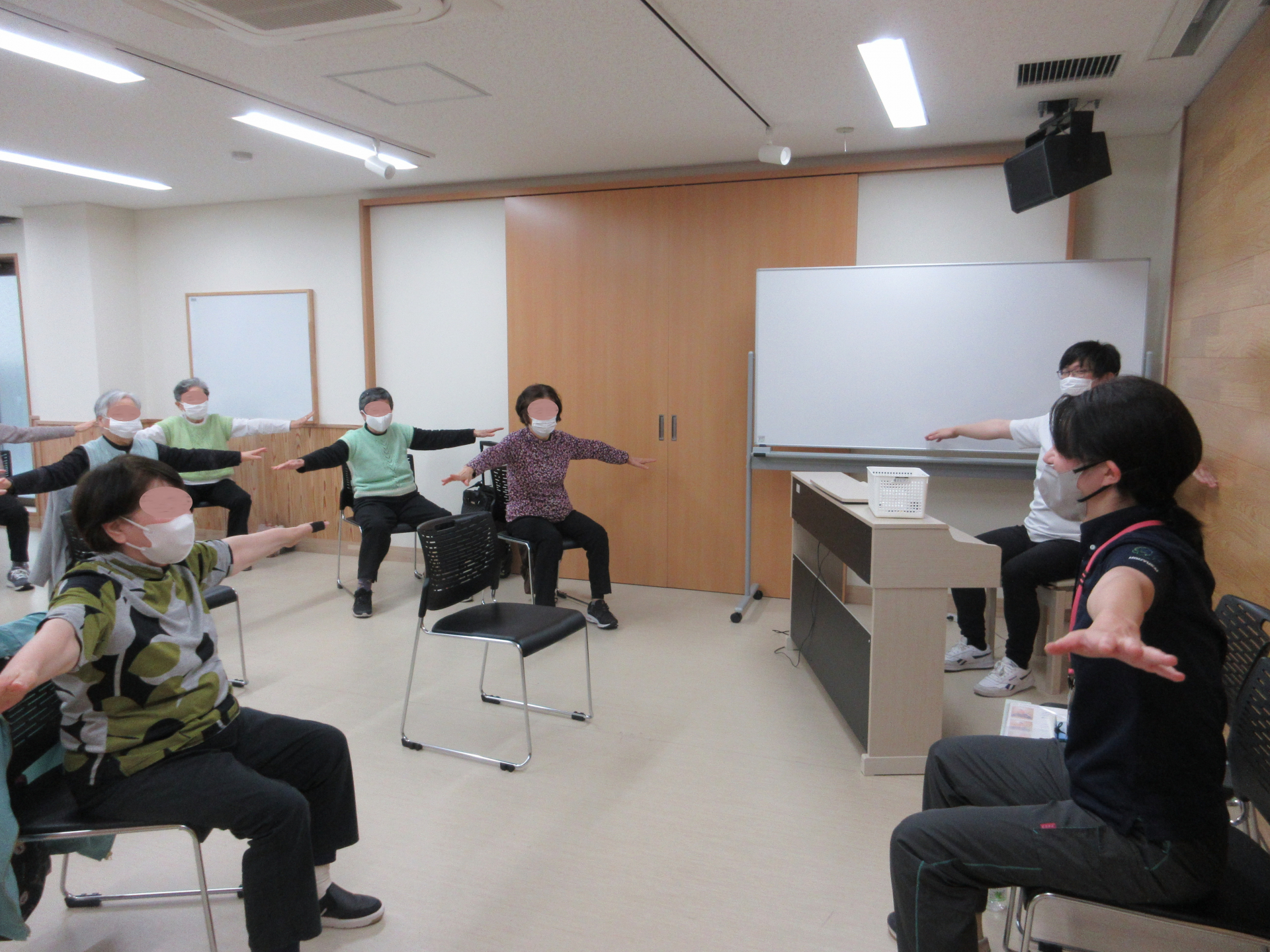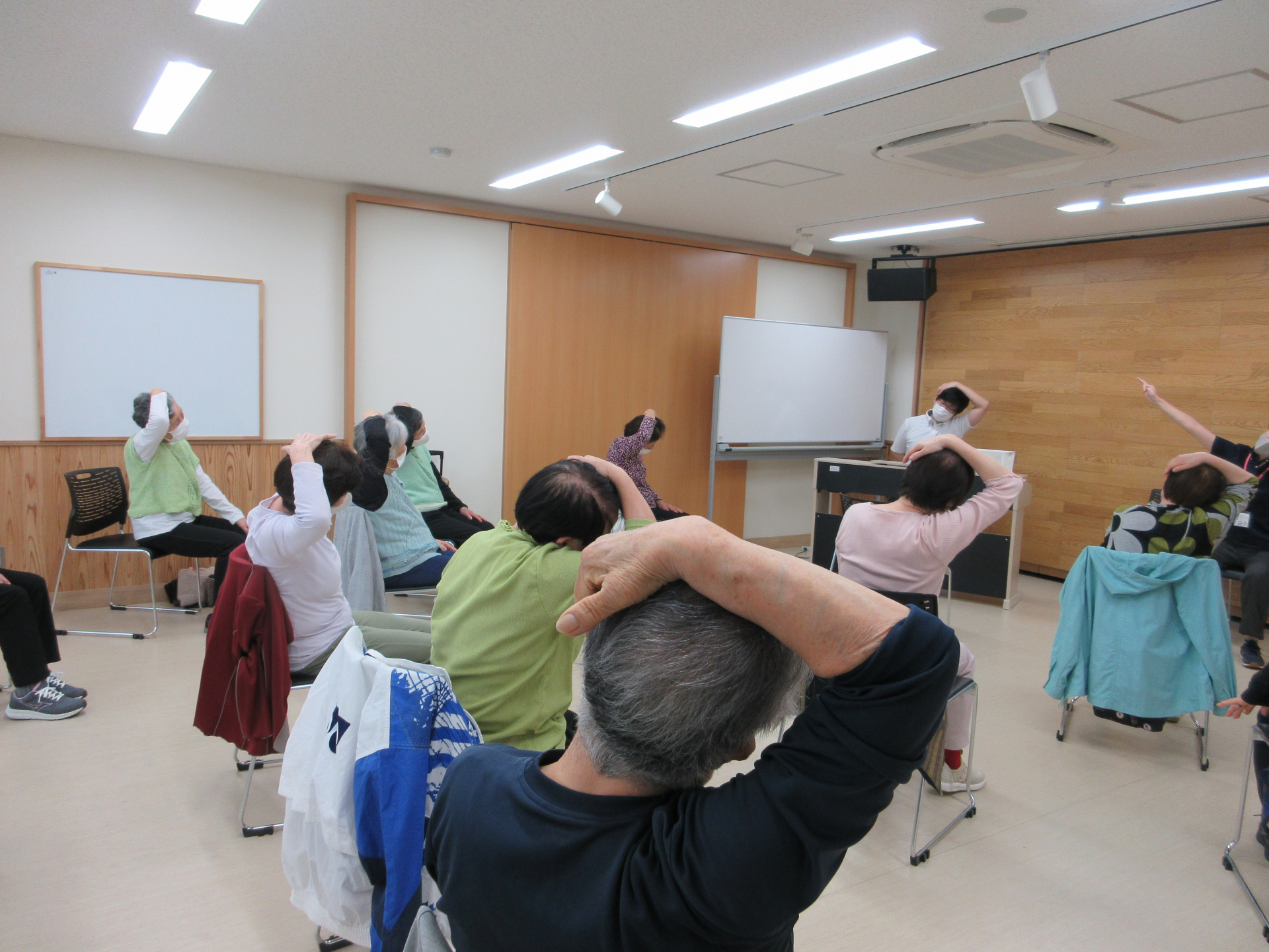 準備運動を兼ねたストレッチをしたあと、リズム体操を2曲実施しました。