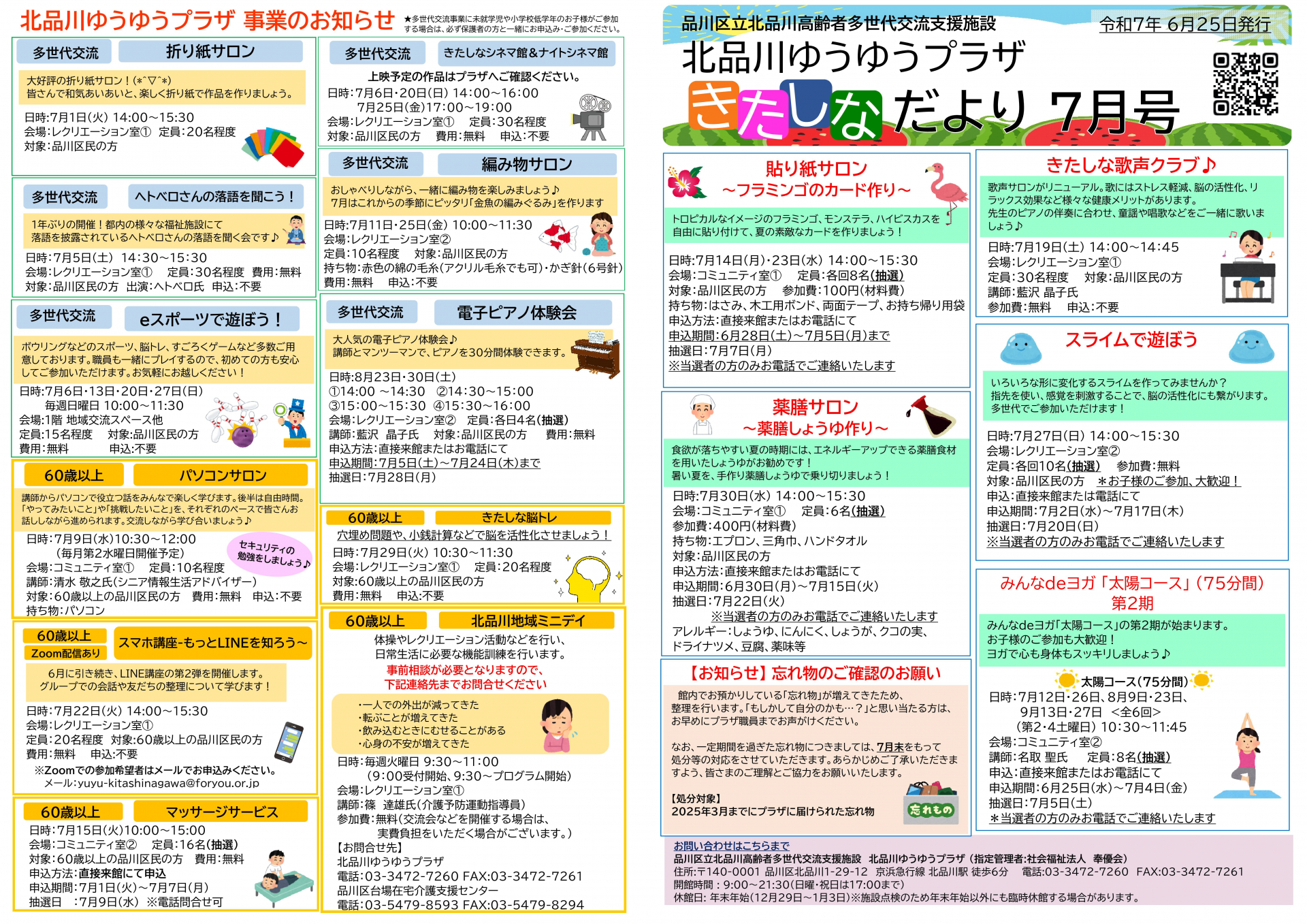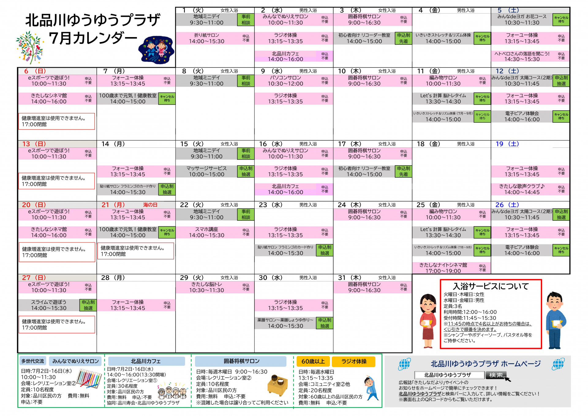 7月も北品川ゆうゆうプラザへご来館お待ちしております。