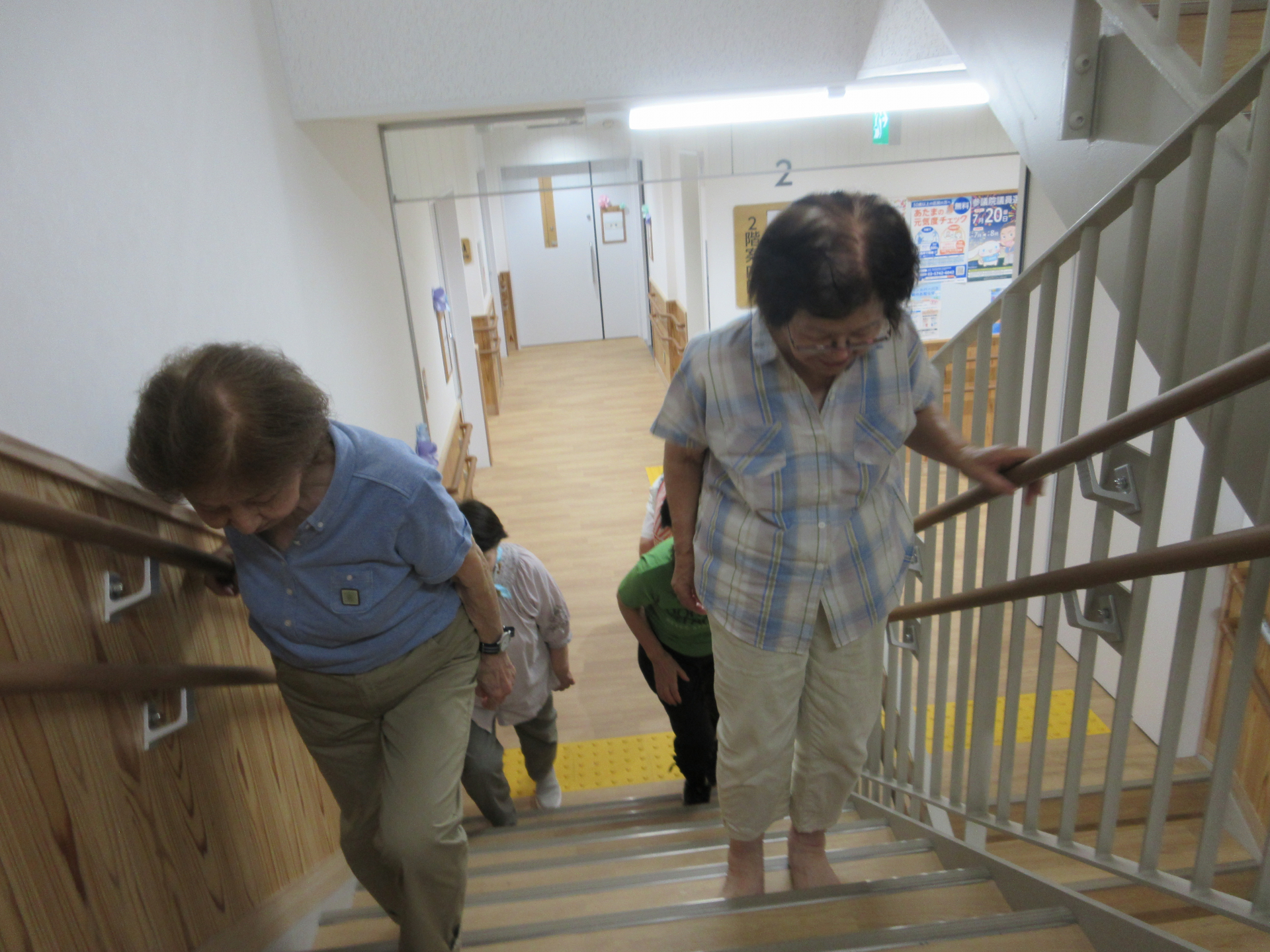 階段の手すりにつかまりながら、身体の使っている部分に意識を向けって、スローな動作で上り下りをすると、的確に刺激が届きます。
