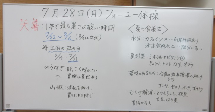 フォーユー体操は、(月)・(土)13:15~13:45開催です。
