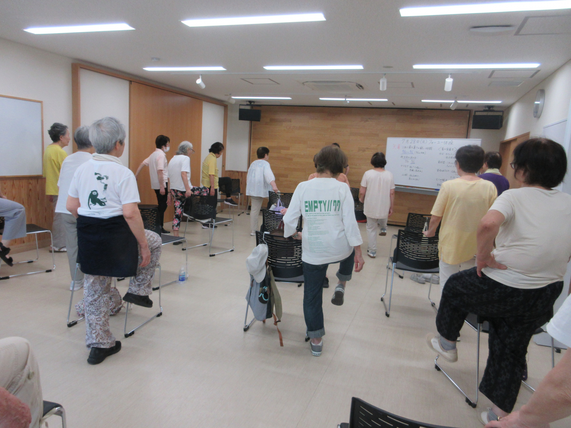 バランス運動を行った後、後半には、「きよしのズンドコ節」に合わせて体操をしました!